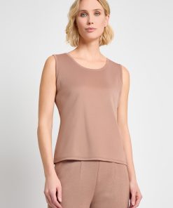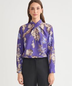 Misook Women’s Brushstroke Printed Crepe De Chine Blouse – True Fit | Honey Suckle & Charmeuse & Truffle & Biscotti & New Ivory & Black
