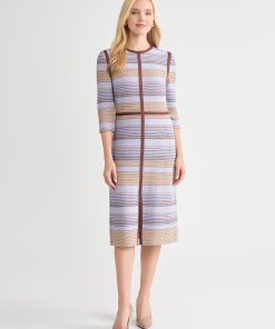 Misook Women’s Floral A-line Soft Knit Midi Dress – True Fit | Paradise Green & Amber Glow & Cape Verde & Biscotti