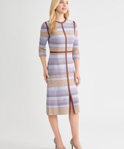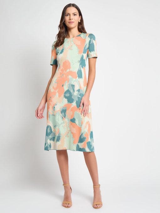 Misook Women’s Floral A-line Soft Knit Midi Dress – True Fit | Paradise Green & Amber Glow & Cape Verde & Biscotti