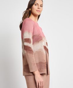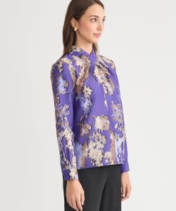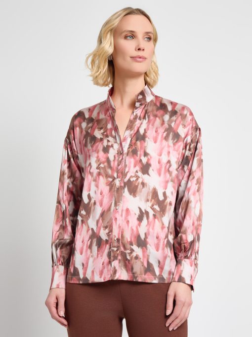 Misook Women’s Brushstroke Printed Crepe De Chine Blouse – True Fit | Honey Suckle & Charmeuse & Truffle & Biscotti & New Ivory & Black