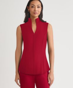 Misook Women’s Hi-neck Sleeveless 100% Pima Cotton Blouse, Scarlet Red – True Fit | Scarlet Red