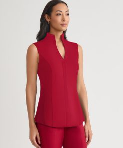 Misook Women’s Hi-neck Sleeveless 100% Pima Cotton Blouse, Scarlet Red – True Fit | Scarlet Red