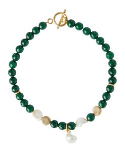 Misook Women’s Hammered Matte 18k Gold Olive Resin & Sage Bead Charm Necklace | Matte Gold