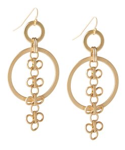 Misook Women’s Hammered Warm 18k Gold Olive Resin & Sage Bead Drop Earrings | Matte Gold