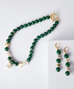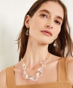 Misook Women’s Hammered Matte 18k Gold Olive Resin & Sage Bead Charm Necklace | Matte Gold