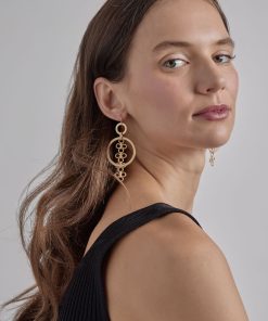 Misook Women’s Hammered Warm 18k Gold Olive Resin & Sage Bead Drop Earrings | Matte Gold