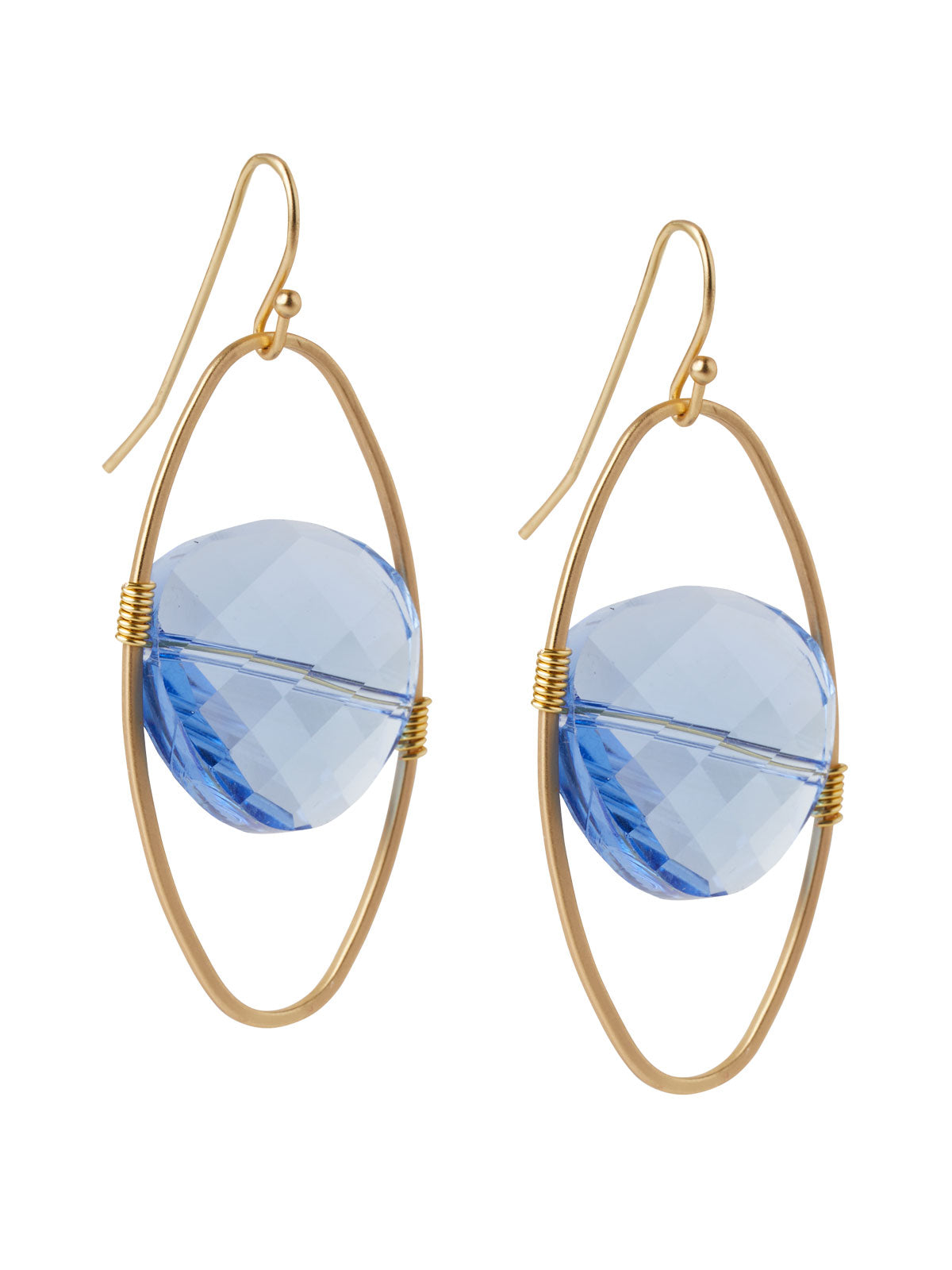 Misook Women’s 18k Matte Gold Plated Blue Crystal Wire Wrapped Earrings | Blue Crystal