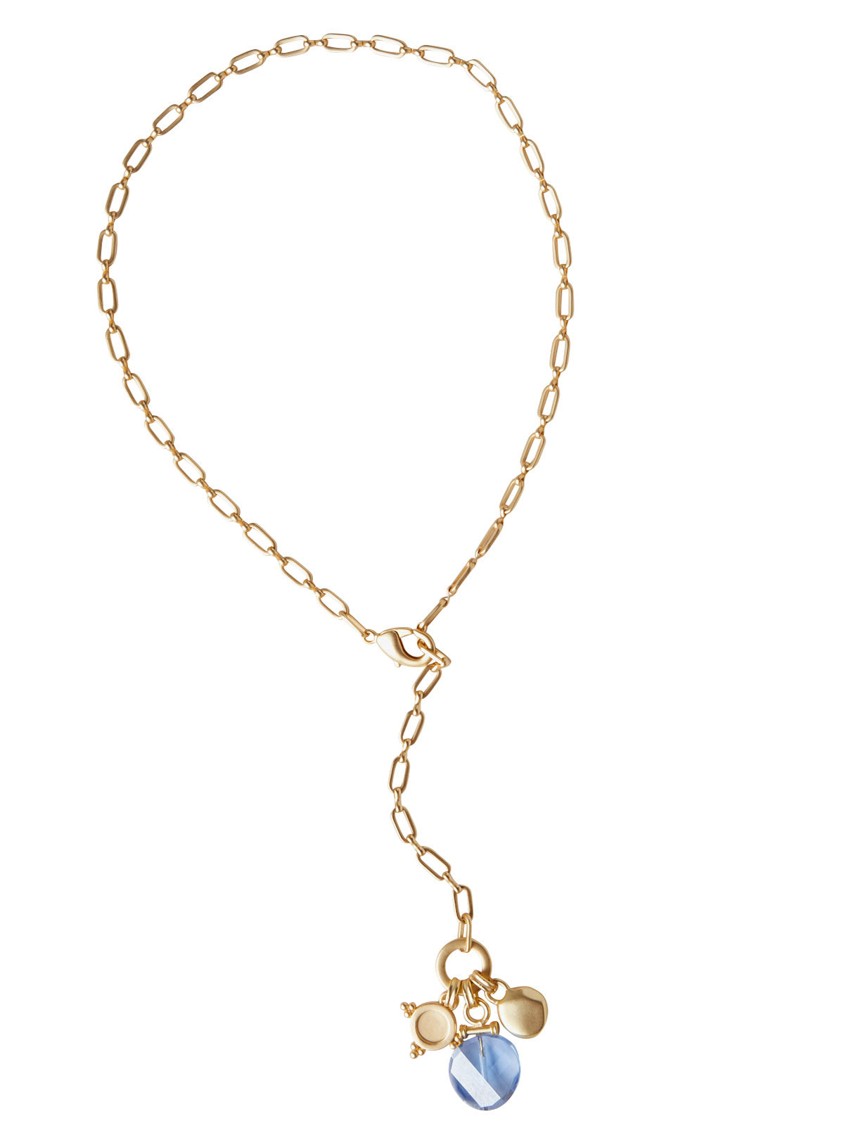 Misook Women’s 18k Matte Gold Plated Paperclip Chain Necklace | Blue Crystal