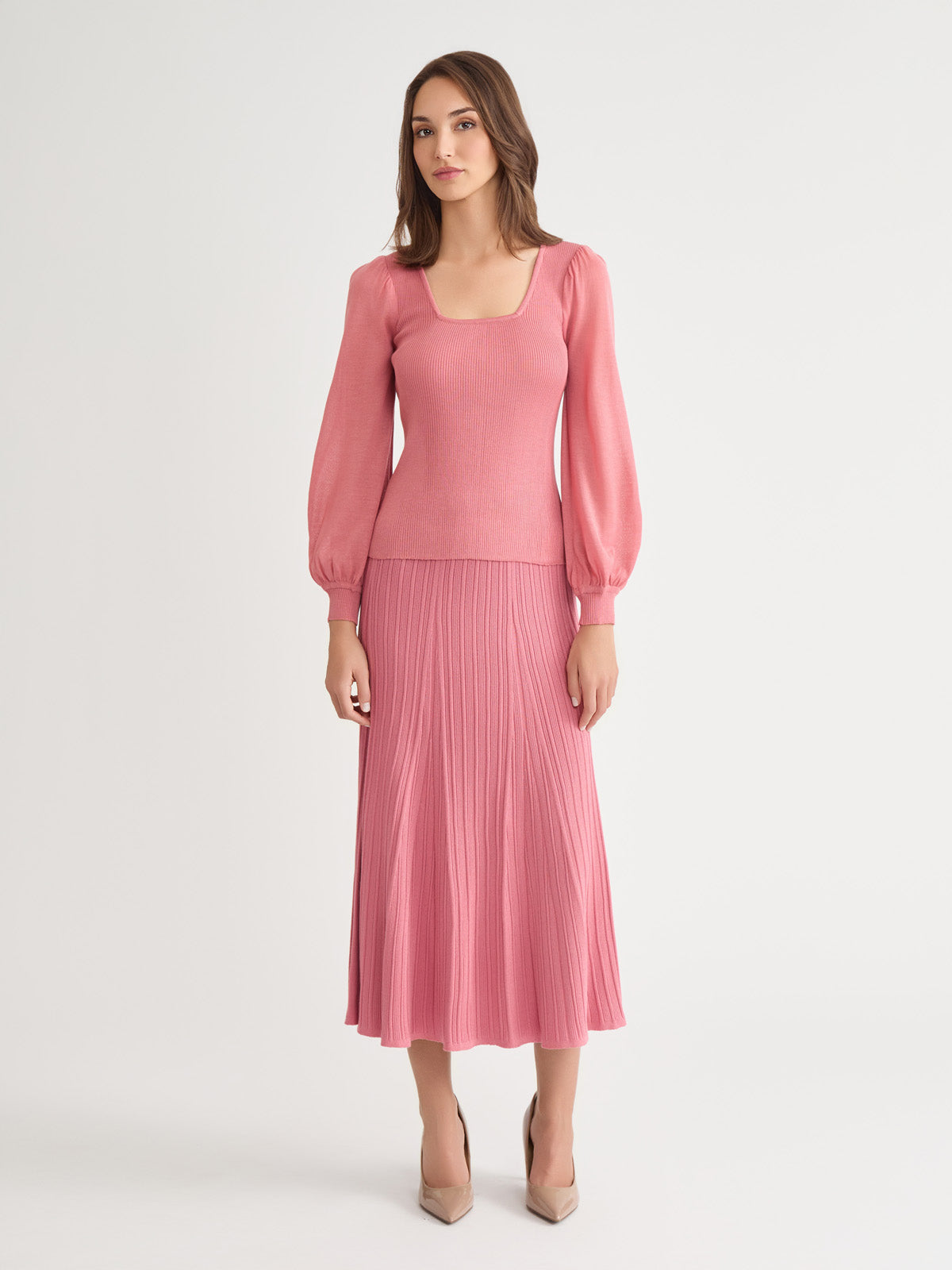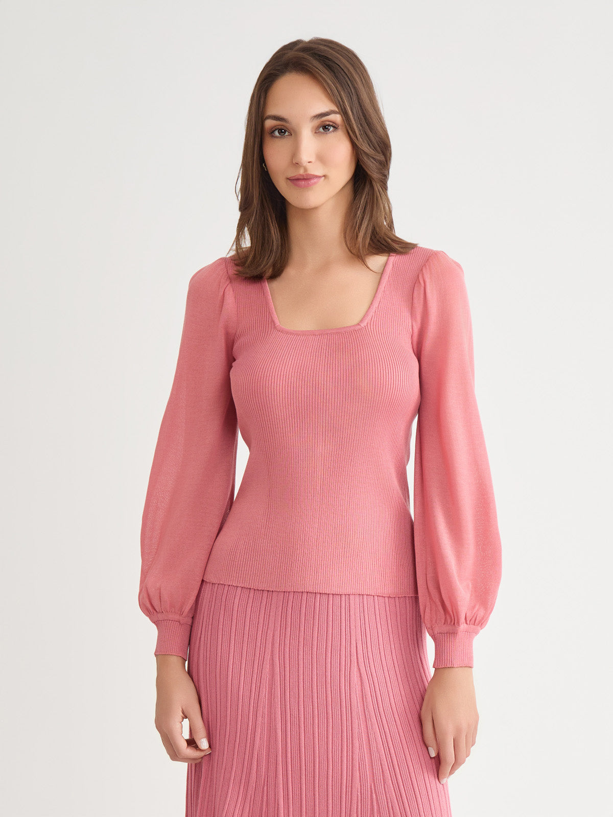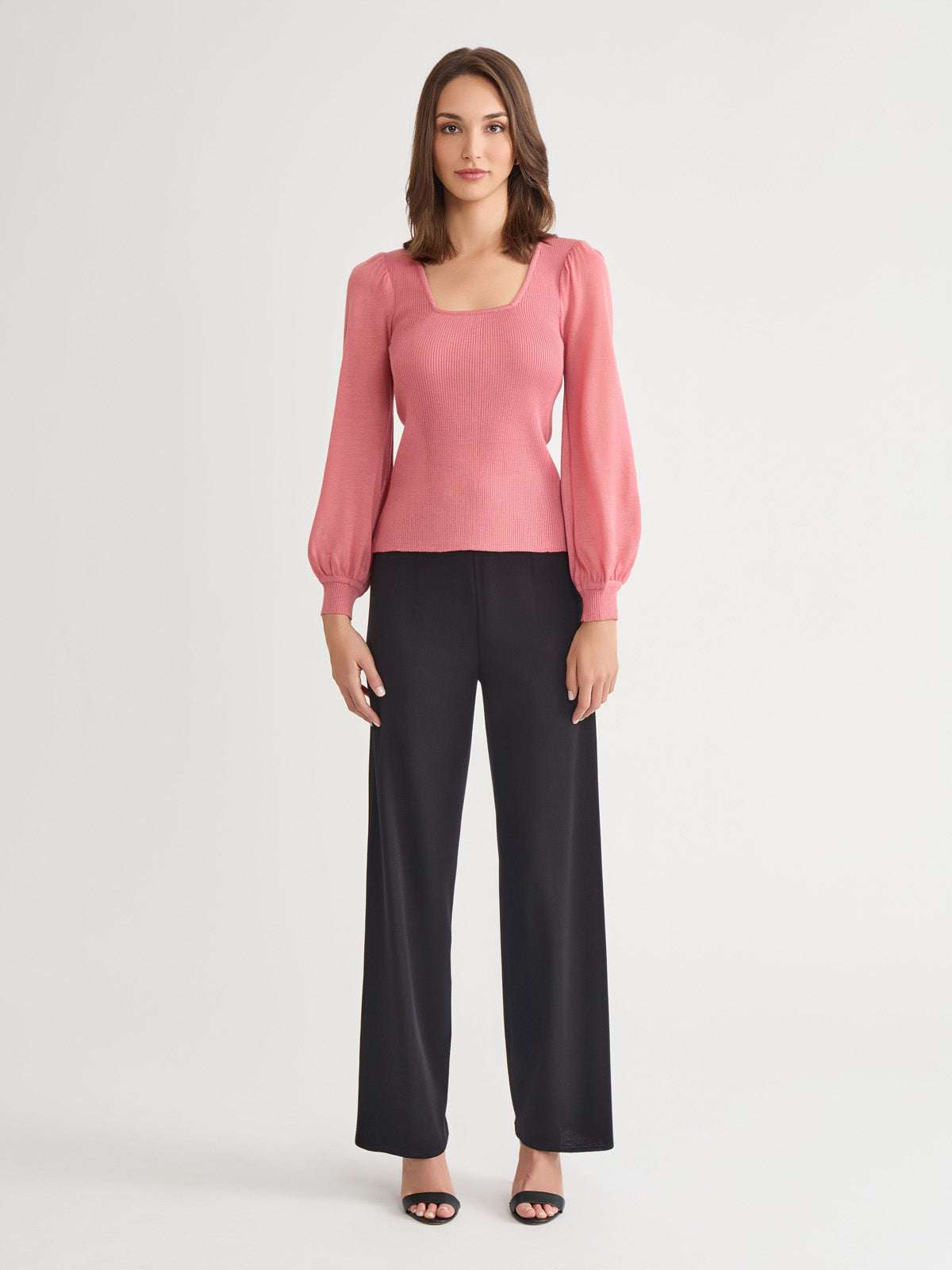 Misook Women’s Balloon Sleeve Ribbed Knit Top – True Fit | Honey Suckle