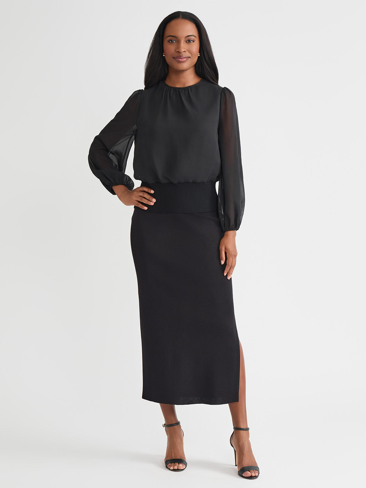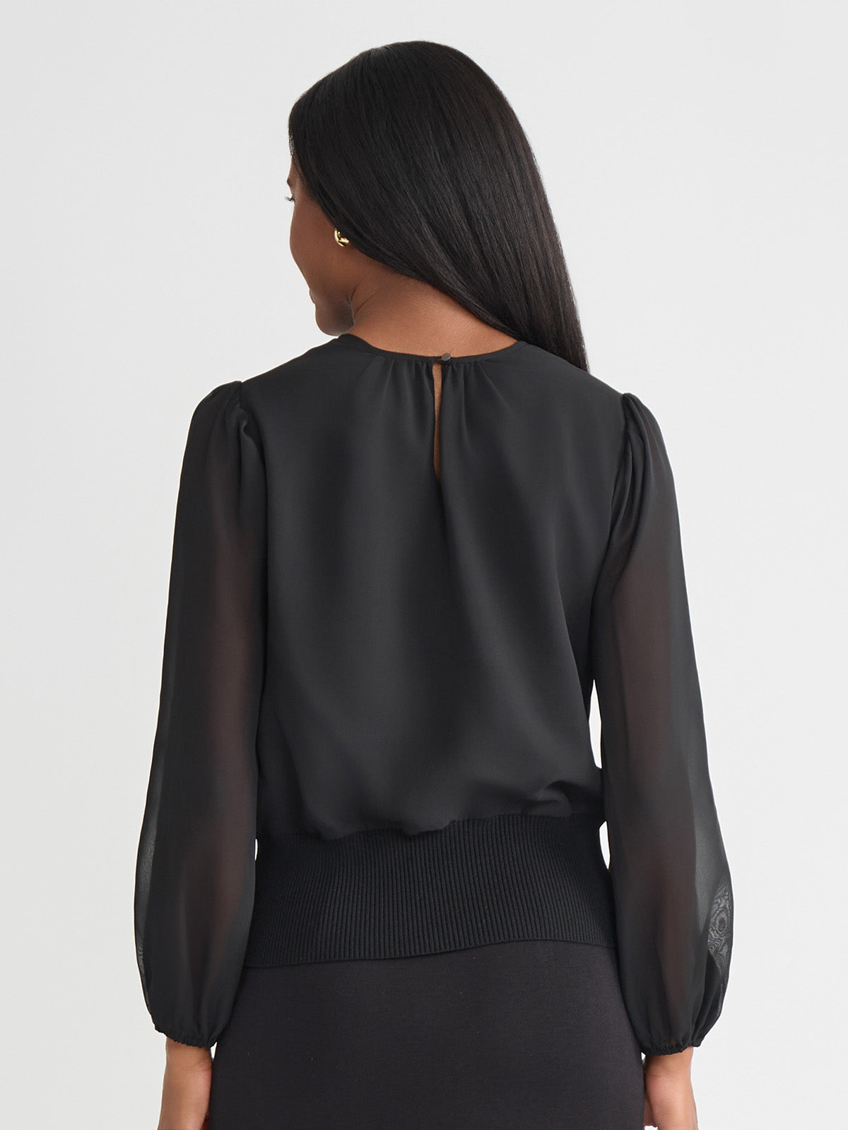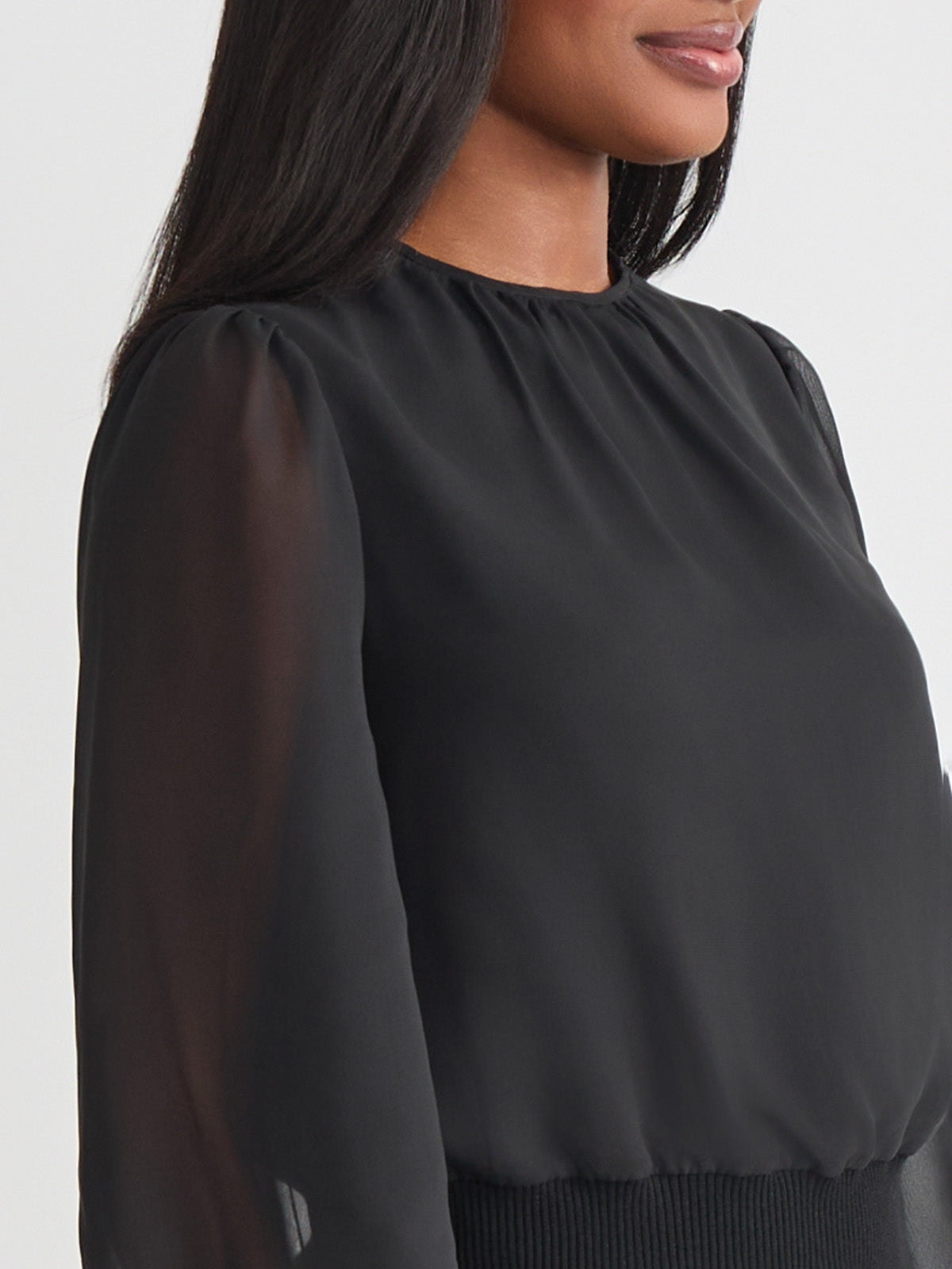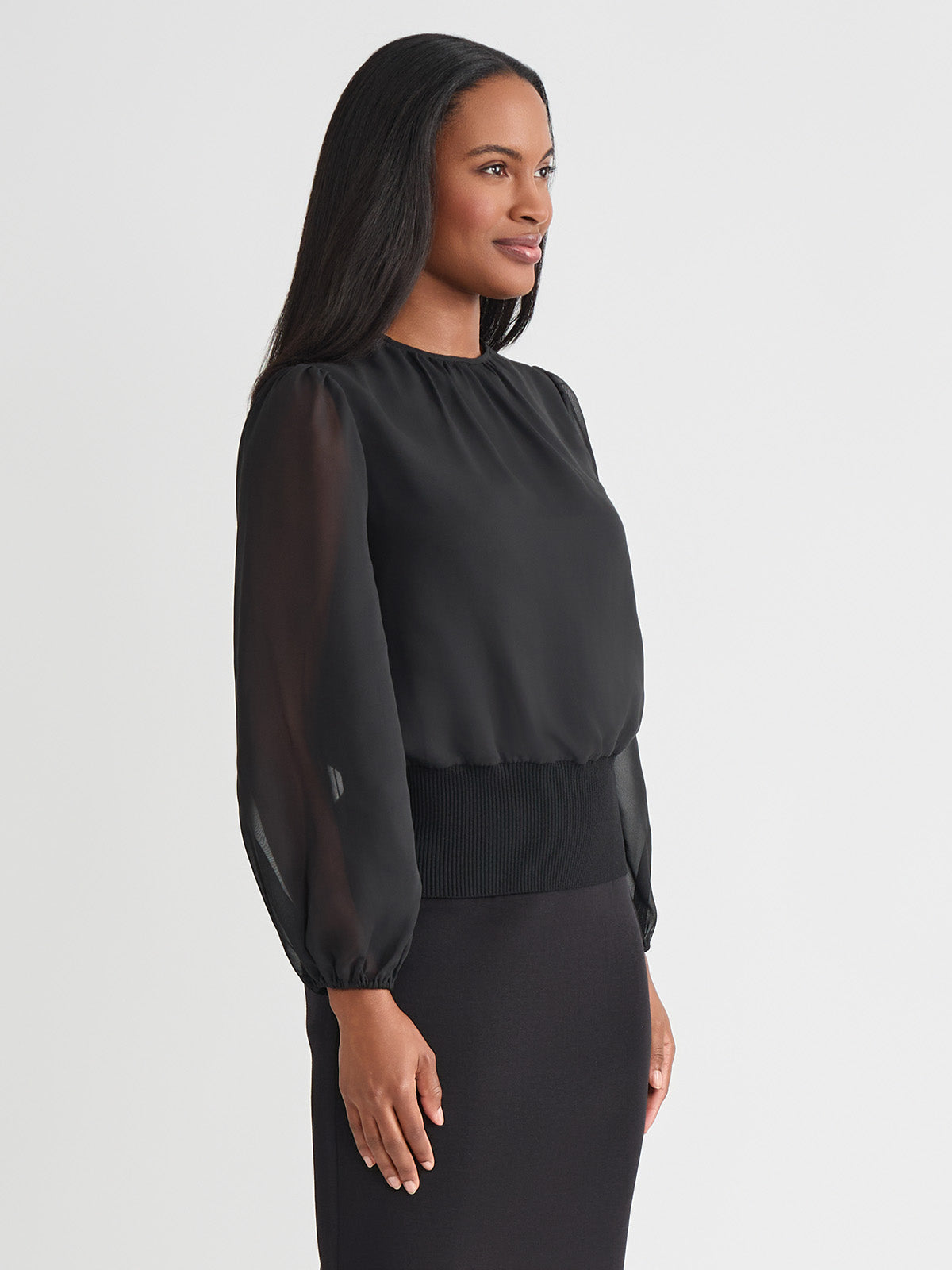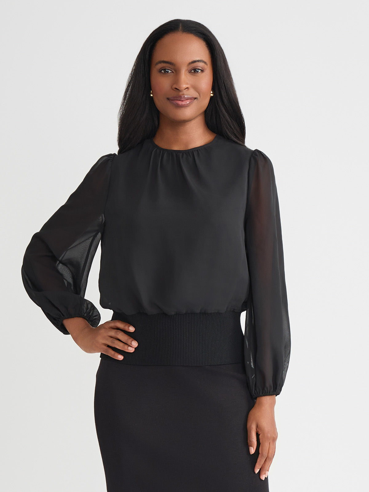 Misook Women’s Chiffon Sheer Sleeve Top – True Fit | Black
