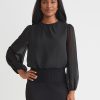 Misook Women’s Chiffon Sheer Sleeve Top – True Fit | Black
