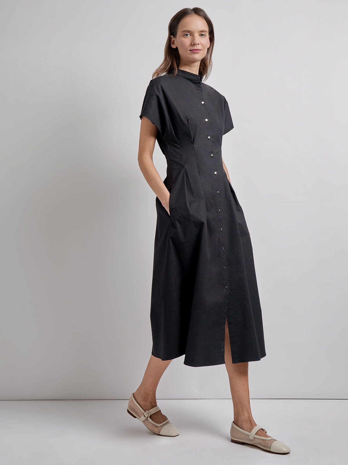 Misook Women’s Fit & Flare Button Front Maxi Dress – Modern Fit | Black
