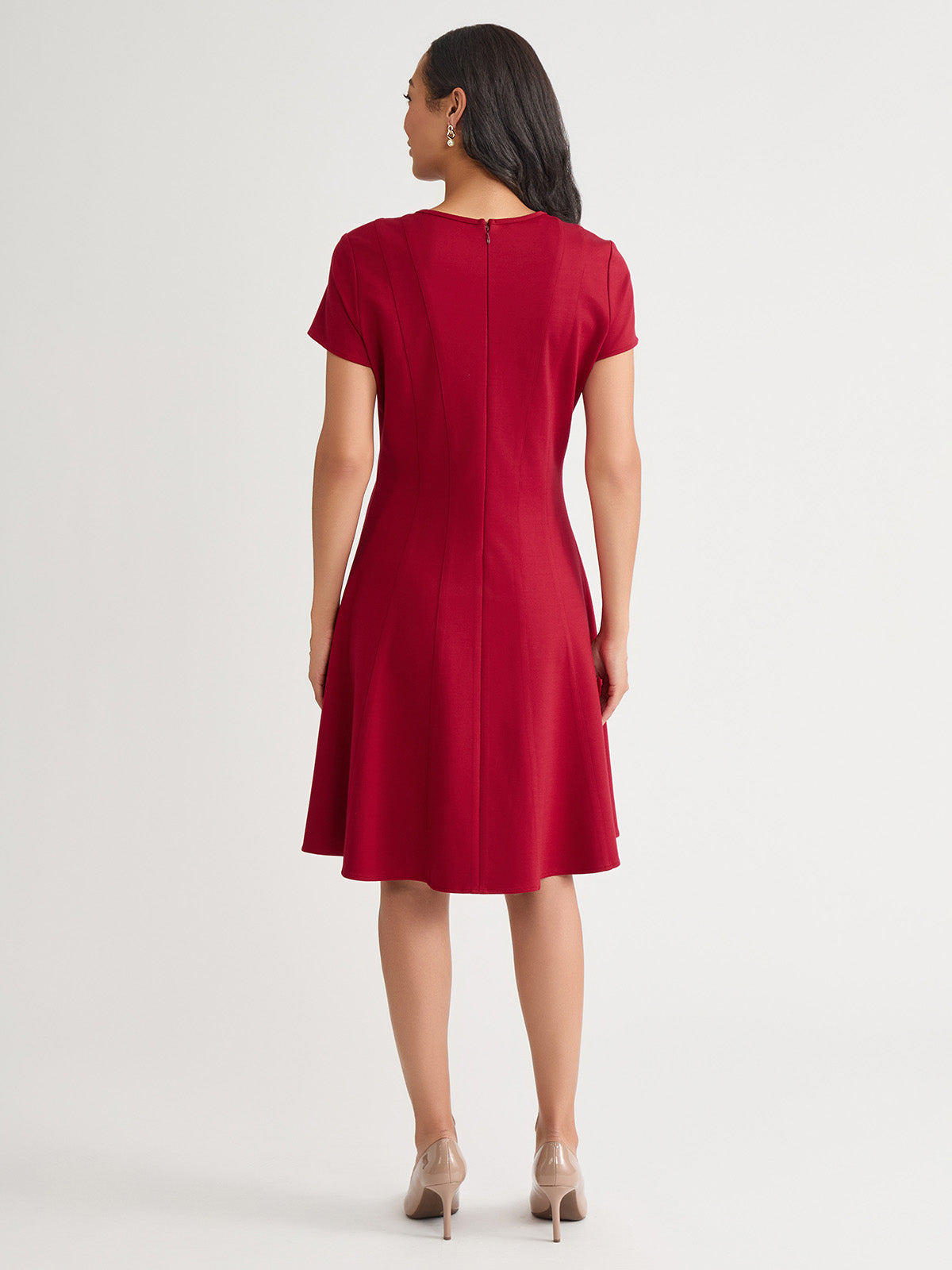 Step into effortless elegance with this Fit and Flare LuxeStretch Dress. Crafted from premium stretch Ponte fabric, this knee-length dress is designed to flatter your figure while providing all-day comfort. With a perfect balance of structure and flow, the fit and flare silhouette creates a beautiful, feminine shape that transitions seamlessly from day to night.