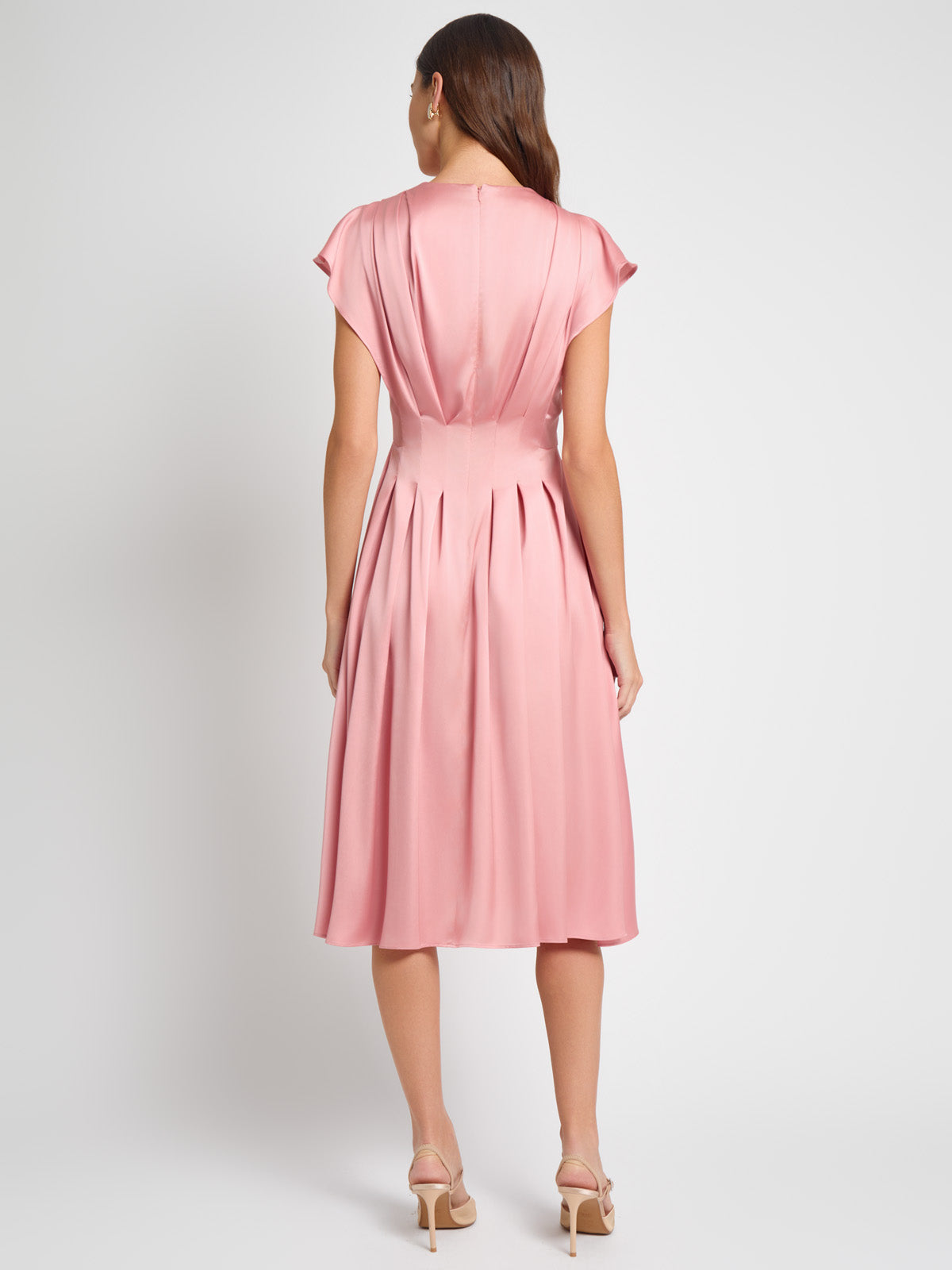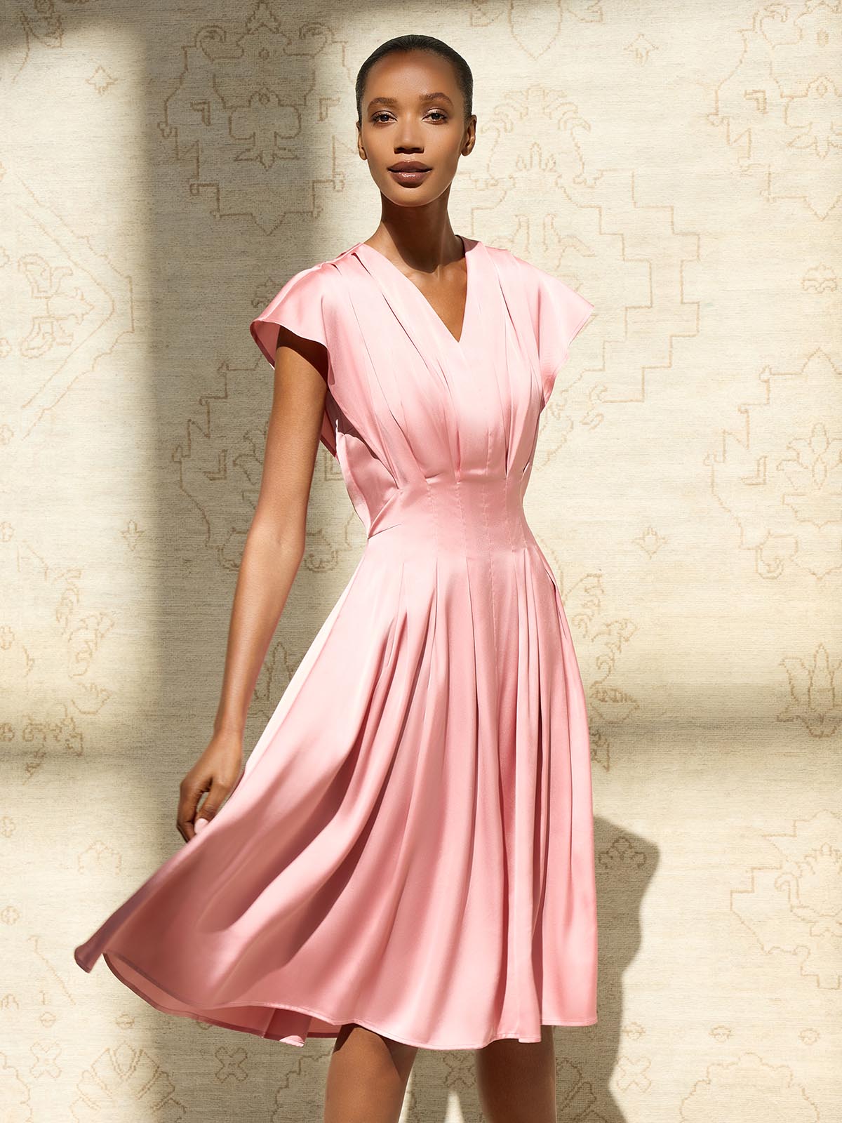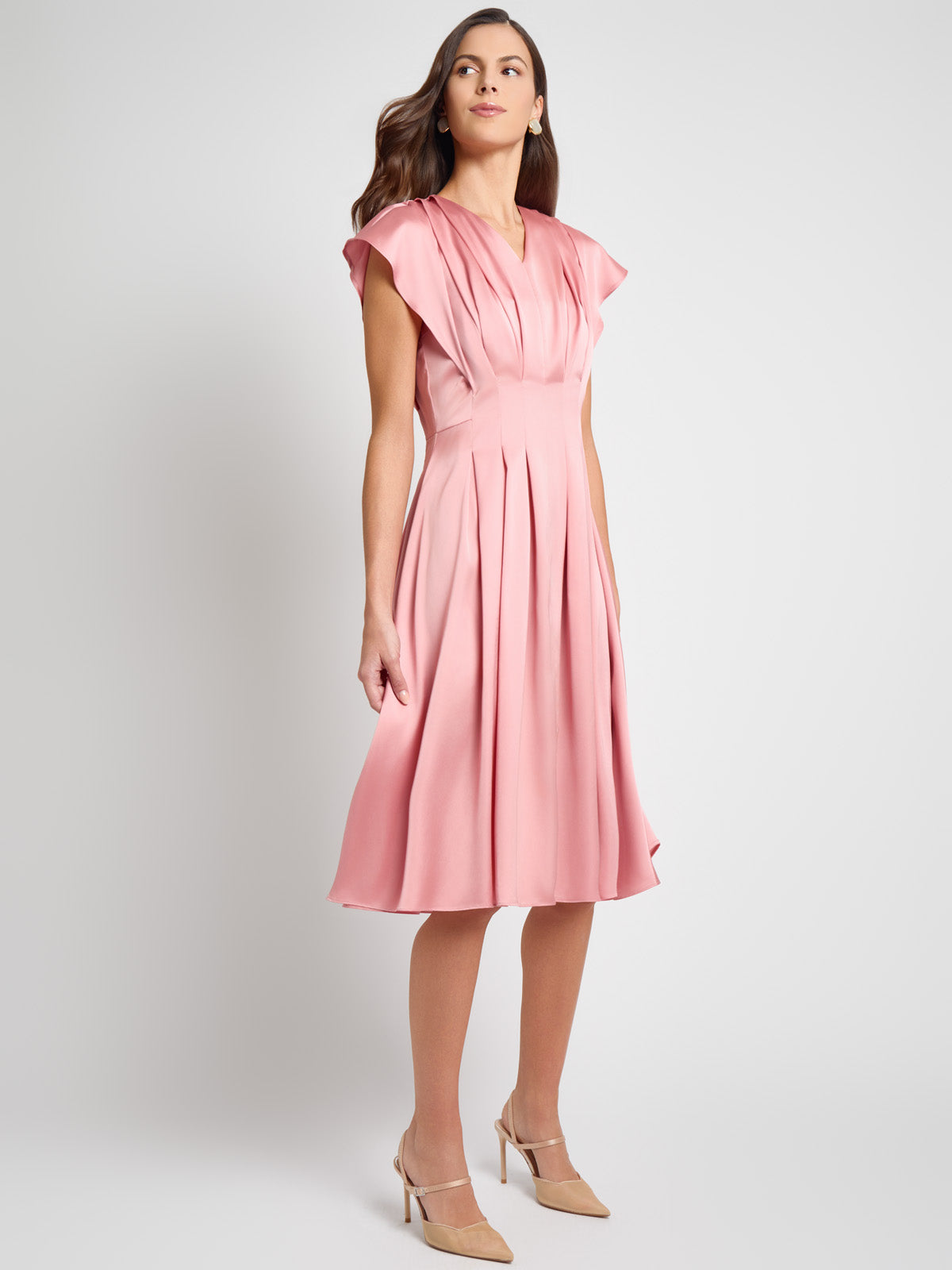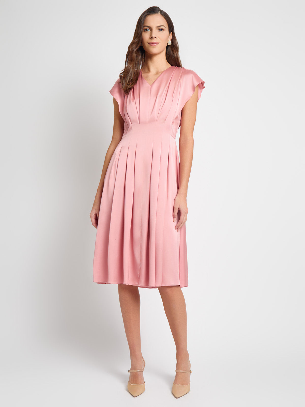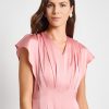 Misook Women’s Fit & Flare Tuck Waist Midi Dress – True Fit | Light Honey Suckle
