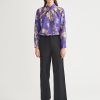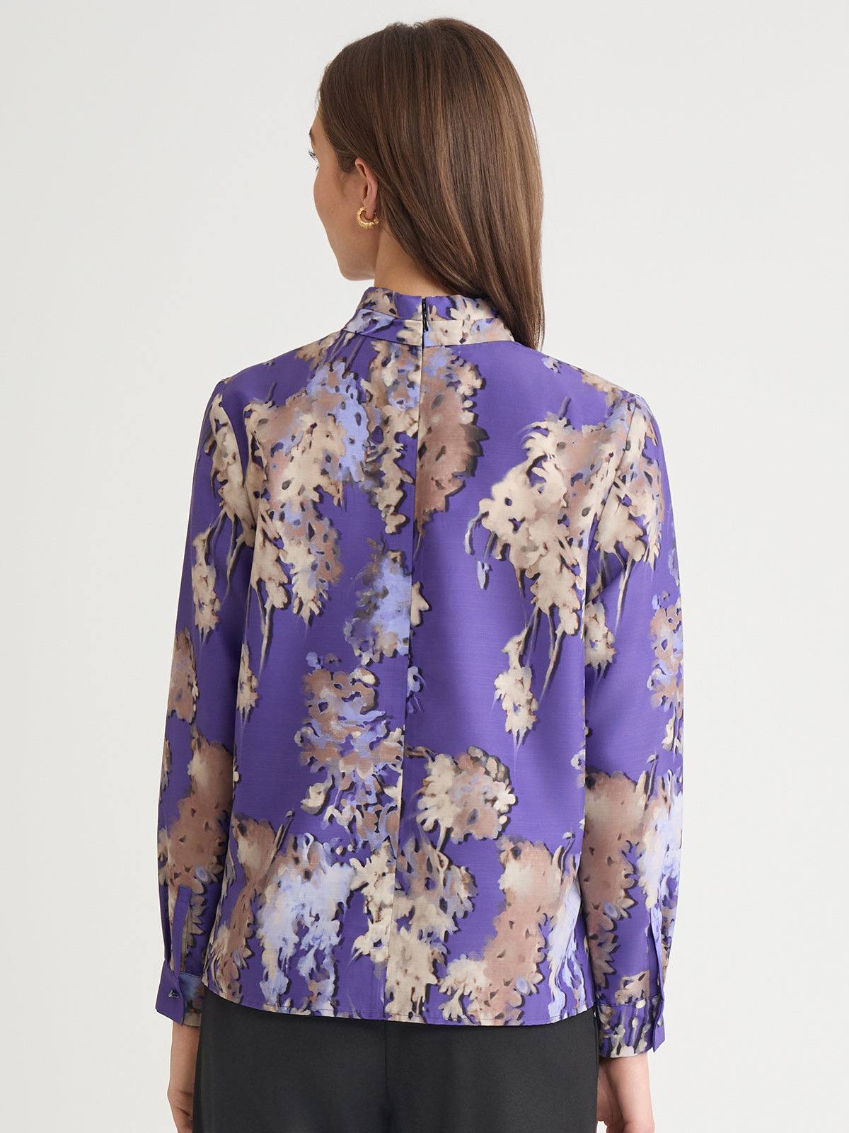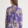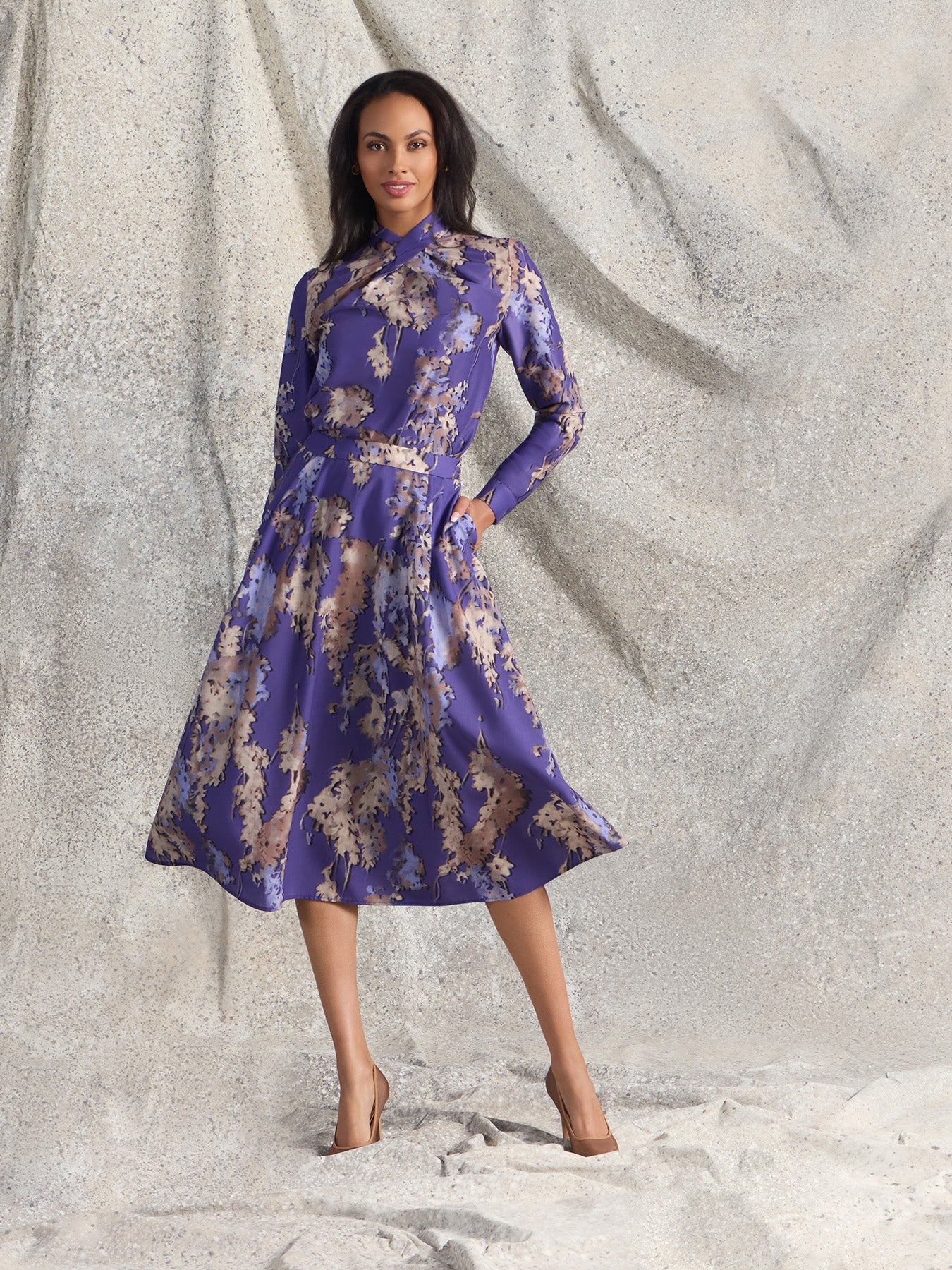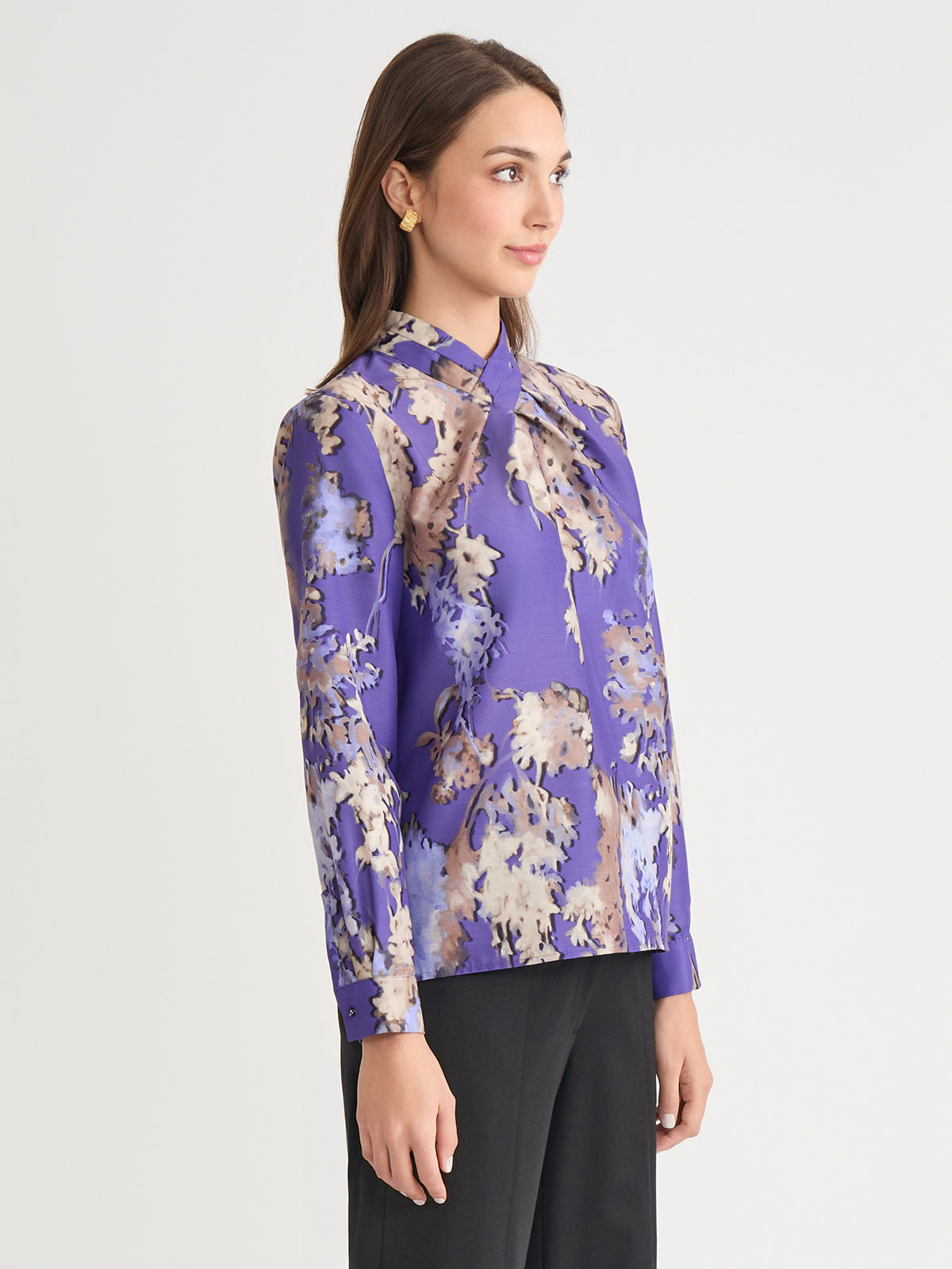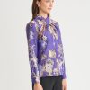 Misook Women’s Floral Crepe De Chine Cross Neck Blouse – True Fit | Concord Purple & Viola & Truffle & Charmeuse & Biscotti & Black
