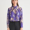 Misook Women’s Floral Crepe De Chine Cross Neck Blouse – True Fit | Concord Purple & Viola & Truffle & Charmeuse & Biscotti & Black