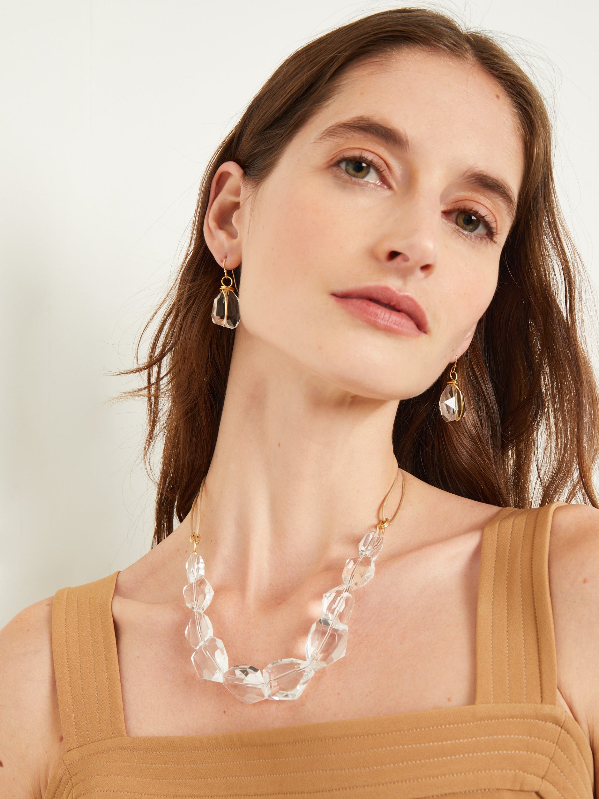 Misook Women’s Handmade Crystal Nugget Mixed Back Necklace | Crystal & Gold