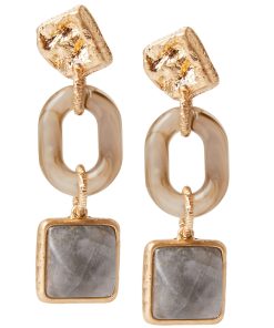 Misook Women’s Hammered Warm 18k Gold Olive Resin & Sage Bead Drop Earrings | Matte Gold