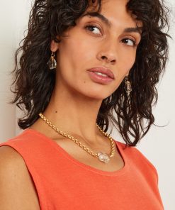 Misook Women’s Handmade Wire Wrapped Crystal Nugget Matte Gold Rolo Chain Necklace | Crystal & Gold