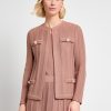 Ideal for both professional and casual settings, the Heritage Braided Cable Soft Knit Jacket adds a touch of elegance to any outfit, offering both style and comfort in one beautiful piece. The jewel neck, hook-and-eye closure, and faux pockets with pearl button accents elevate its style, making it a versatile piece for any wardrobe.