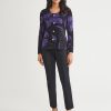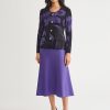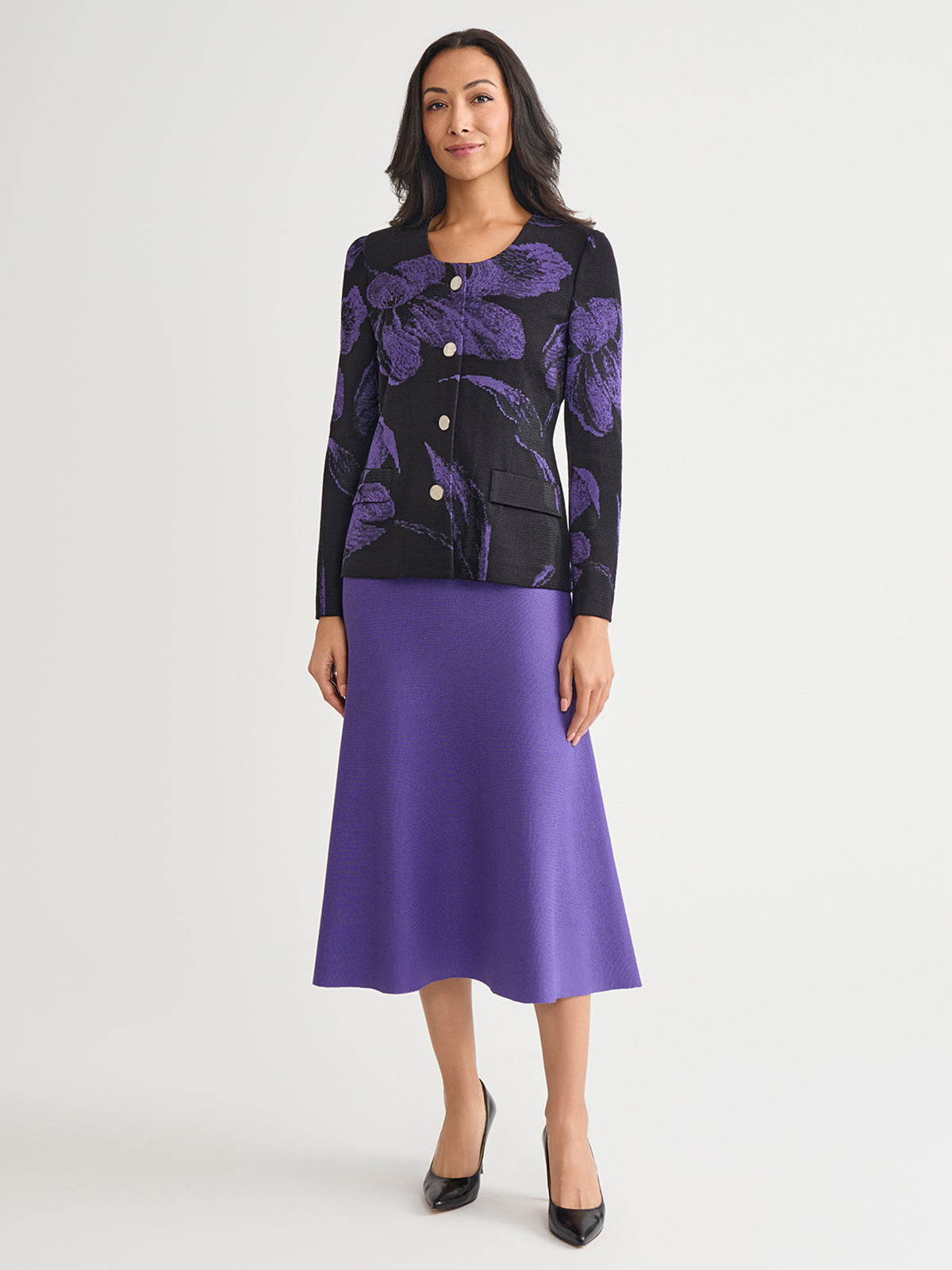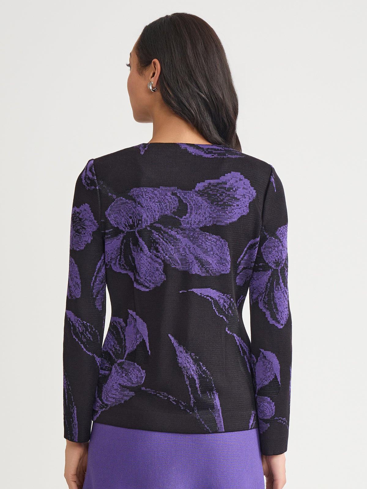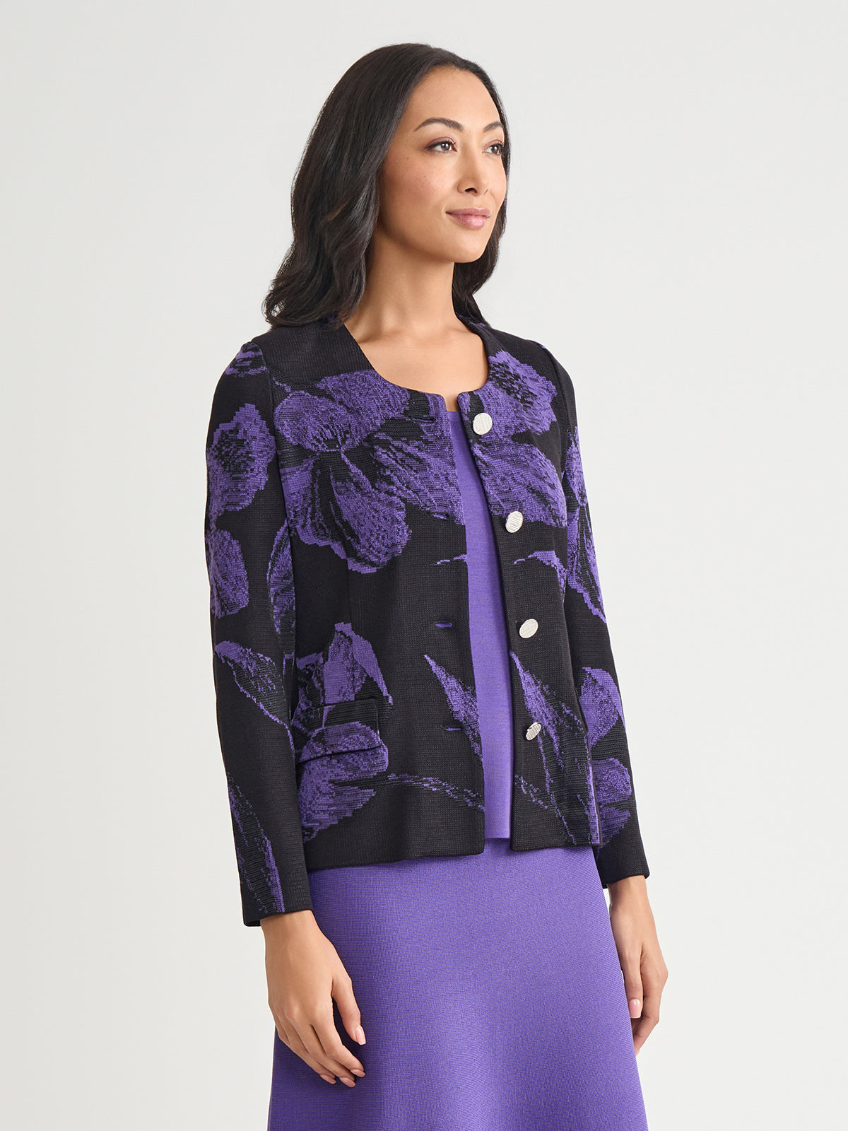 Misook Women’s Heritage Floral Jacquard Knit Jacket – True Fit | Concord Purple & Black