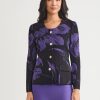 Misook Women’s Heritage Floral Jacquard Knit Jacket – True Fit | Concord Purple & Black