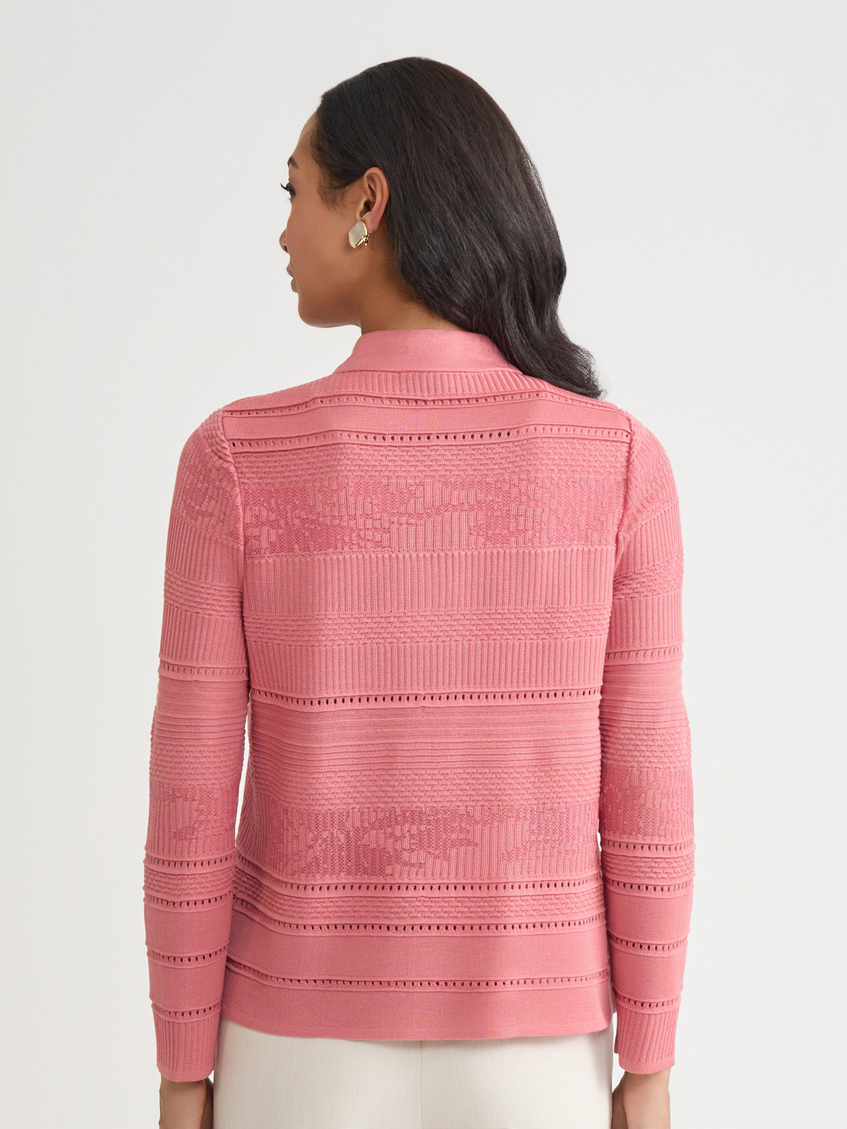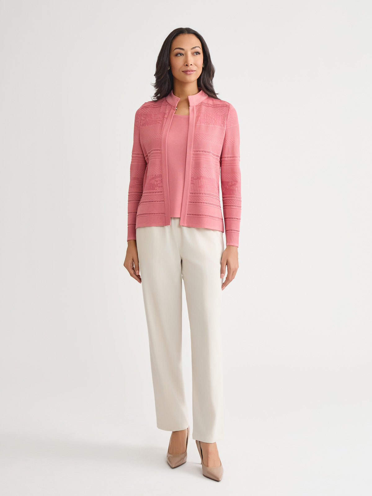 Misook Women’s Heritage Multi-stitch Tonal Knit Jacket – True Fit | Honey Suckle
