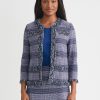 Misook Women’s Heritage Plaid Fringe Trim Knit Jacket – True Fit | Lazuli Blue & Sangria & Blue Frost & Black