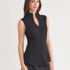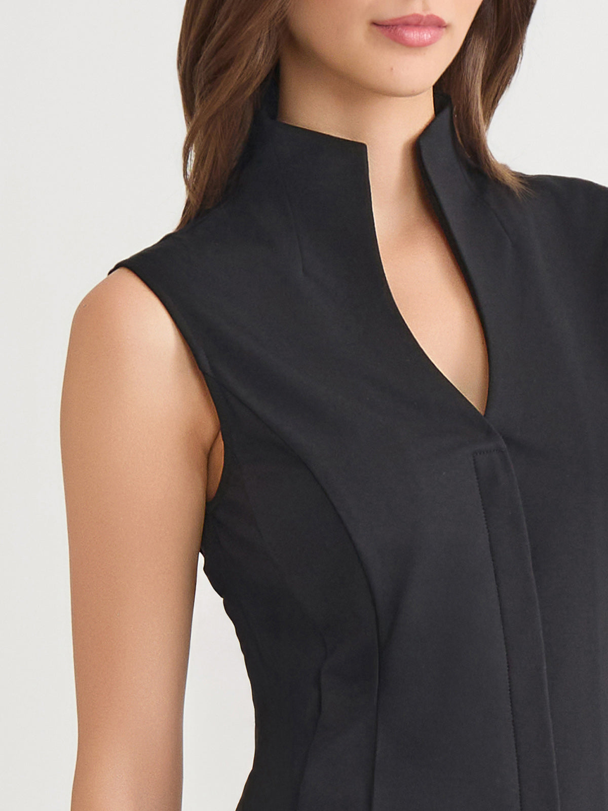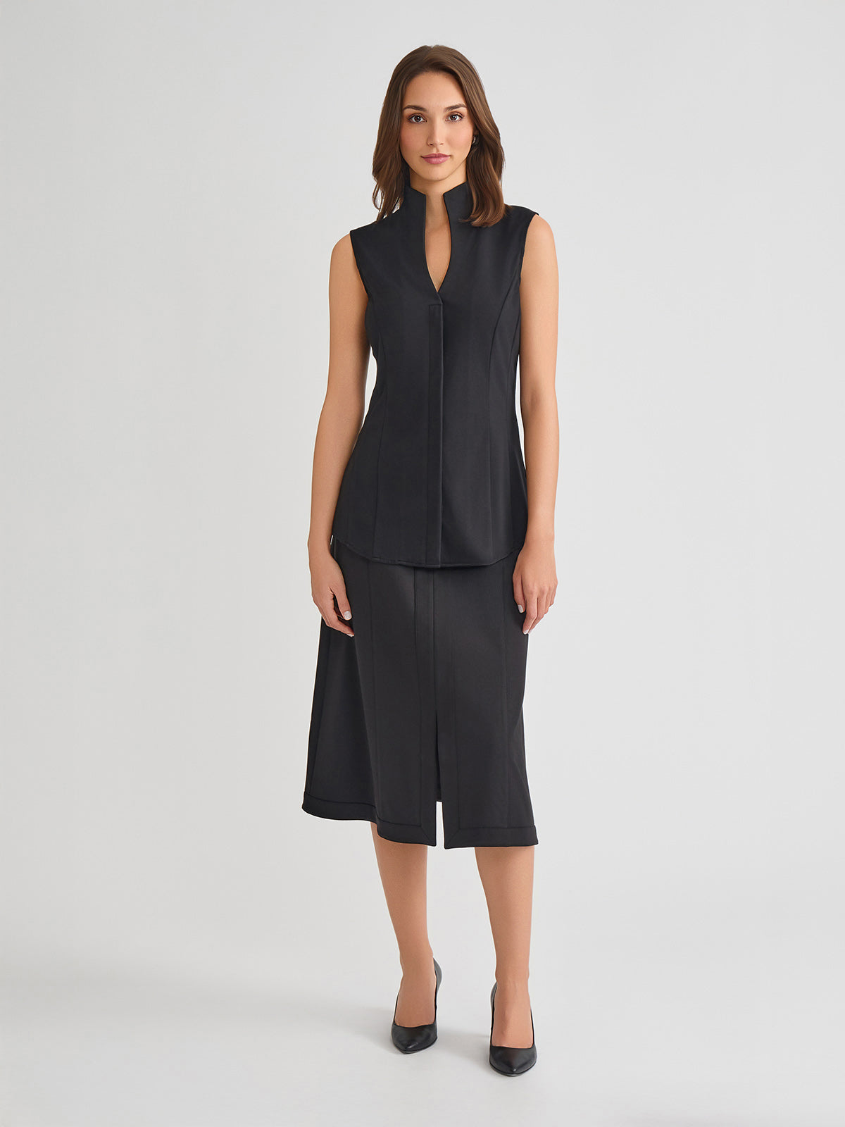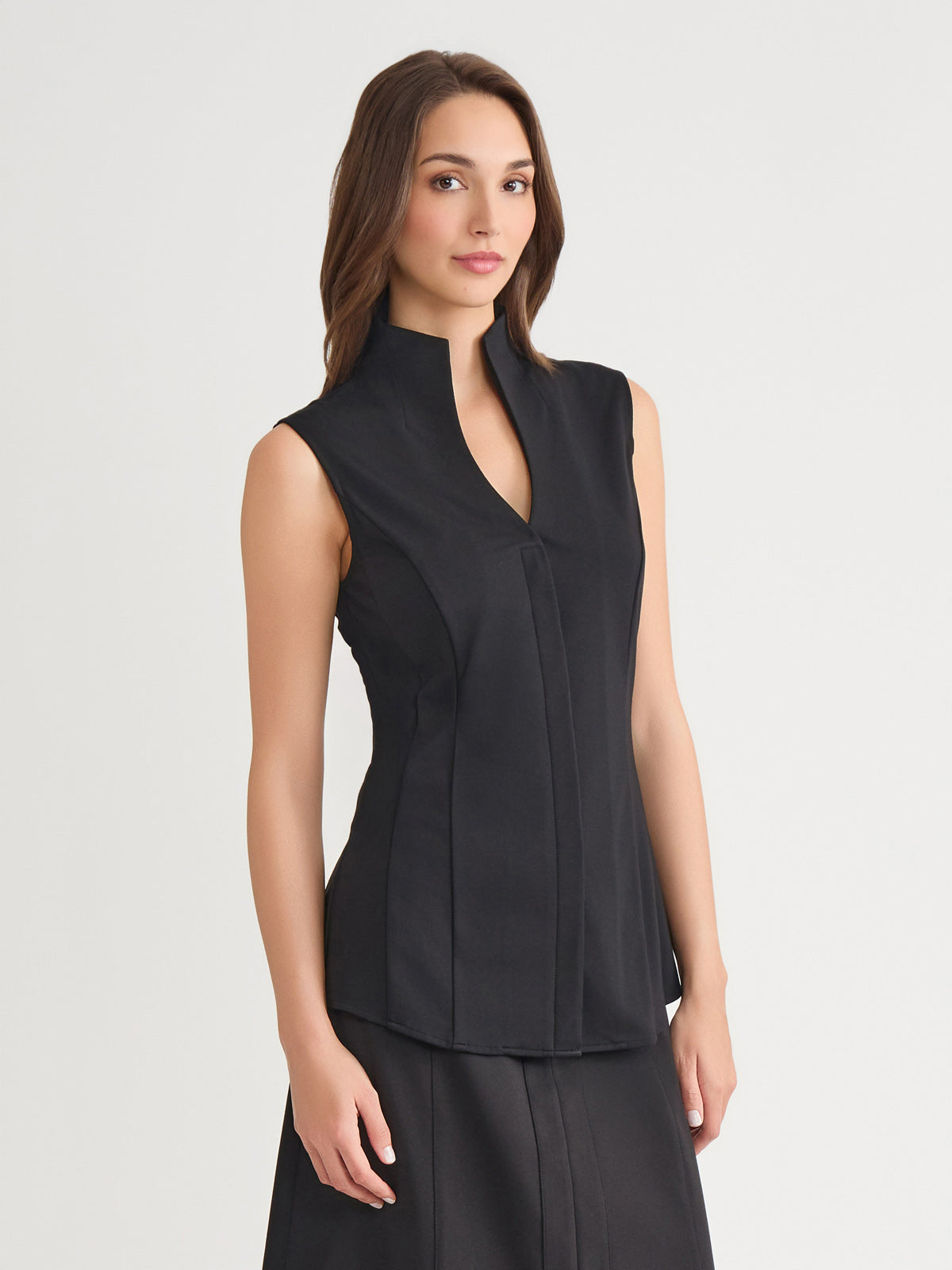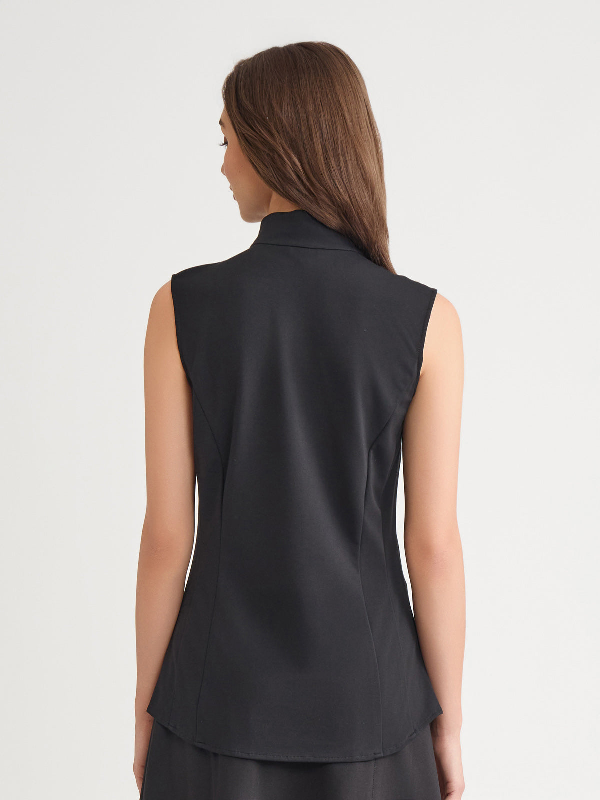 Elevate your ensemble with the refined structure of this Hi-Neck Sleeveless Cotton Blouse. Designed with a modern stand collar and sleek concealed button front, this blouse creates a graceful silhouette that effortlessly transitions from daytime polish to evening chic. The tailored fit flatters the frame, while the breathable cotton fabric ensures all-day comfort.