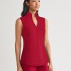 Misook Women’s Hi-neck Sleeveless 100% Pima Cotton Blouse, Scarlet Red – True Fit | Scarlet Red