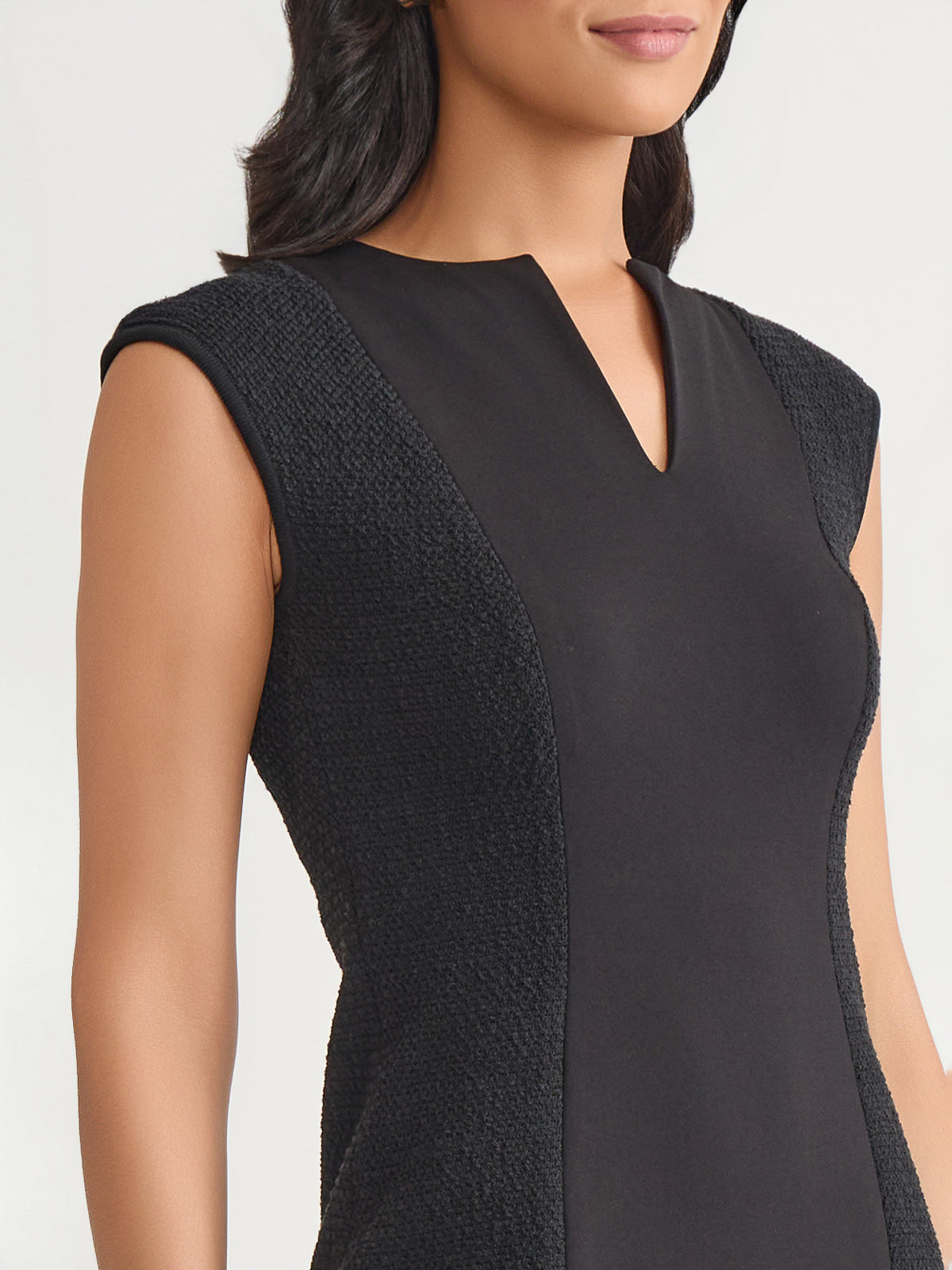Misook Women’s Mixed Media Sleeveless Sheath Dress – True Fit | Black