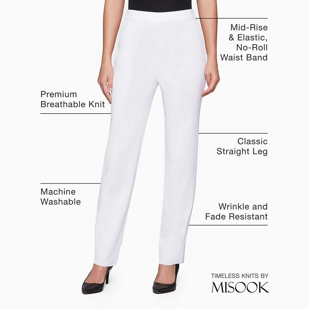 Misook Women’s Nancy Straight Leg Mylana Knit Pant, White – True Fit | White