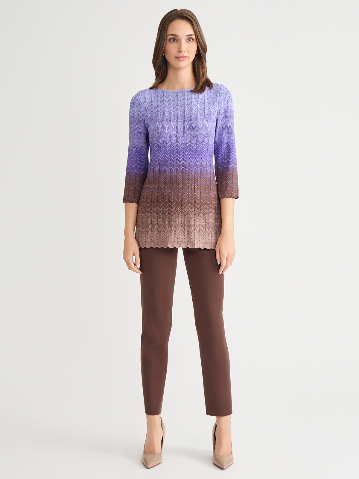 Ideal for evening events, dinner parties, or casual gatherings, the Ombre Pointelle Soft Knit Tunic is designed to seamlessly complement your refined taste and offer lasting comfort throughout your special moments. The beautiful ombre pointelle knit pattern creates a subtle gradient effect, adding depth and texture for a striking yet understated look. Whether paired with tailored pants or a sleek skirt, this tunic is the perfect addition to your occasion wear collection.