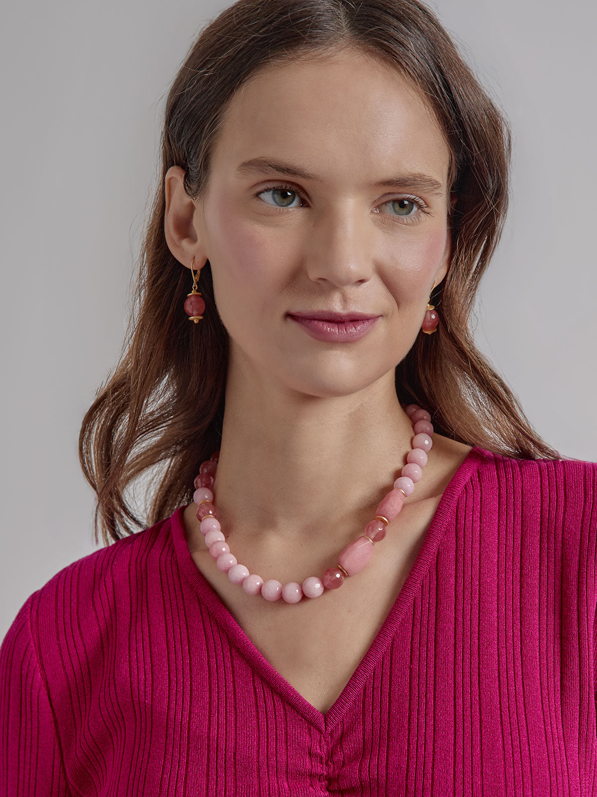 18K Gold Plate; Peach Jade; Melon Quartz; Pink Coral