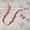 Misook Women’s Peach Jade Mixed Media Necklace | Pink & Gold