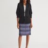 Designed for style that moves with you, the Plaid Knit Straight Skirt is a refined wardrobe essential with just the right balance of structure and comfort. Perfectly tailored at a flattering 23-inch length, this skirt features a classic straight silhouette in a timeless plaid pattern—ideal for everything from polished daytime affairs to elevated evening events. Its clean lines and smooth finish make it a versatile foundation—style it with a silk blouse and heels for a formal event, or pair it with a matching jacket for a sleek, coordinated ensemble.