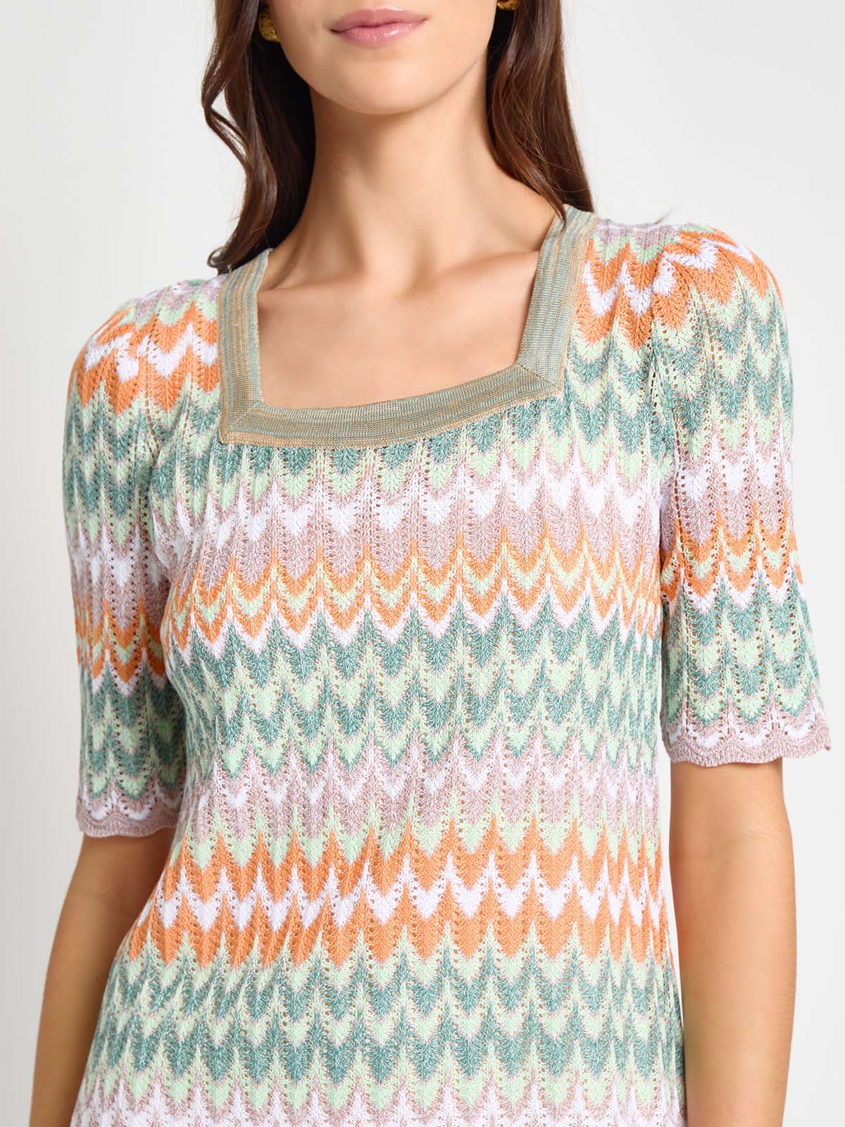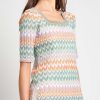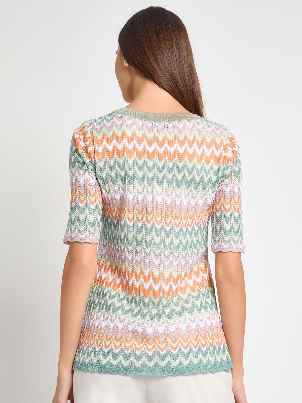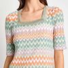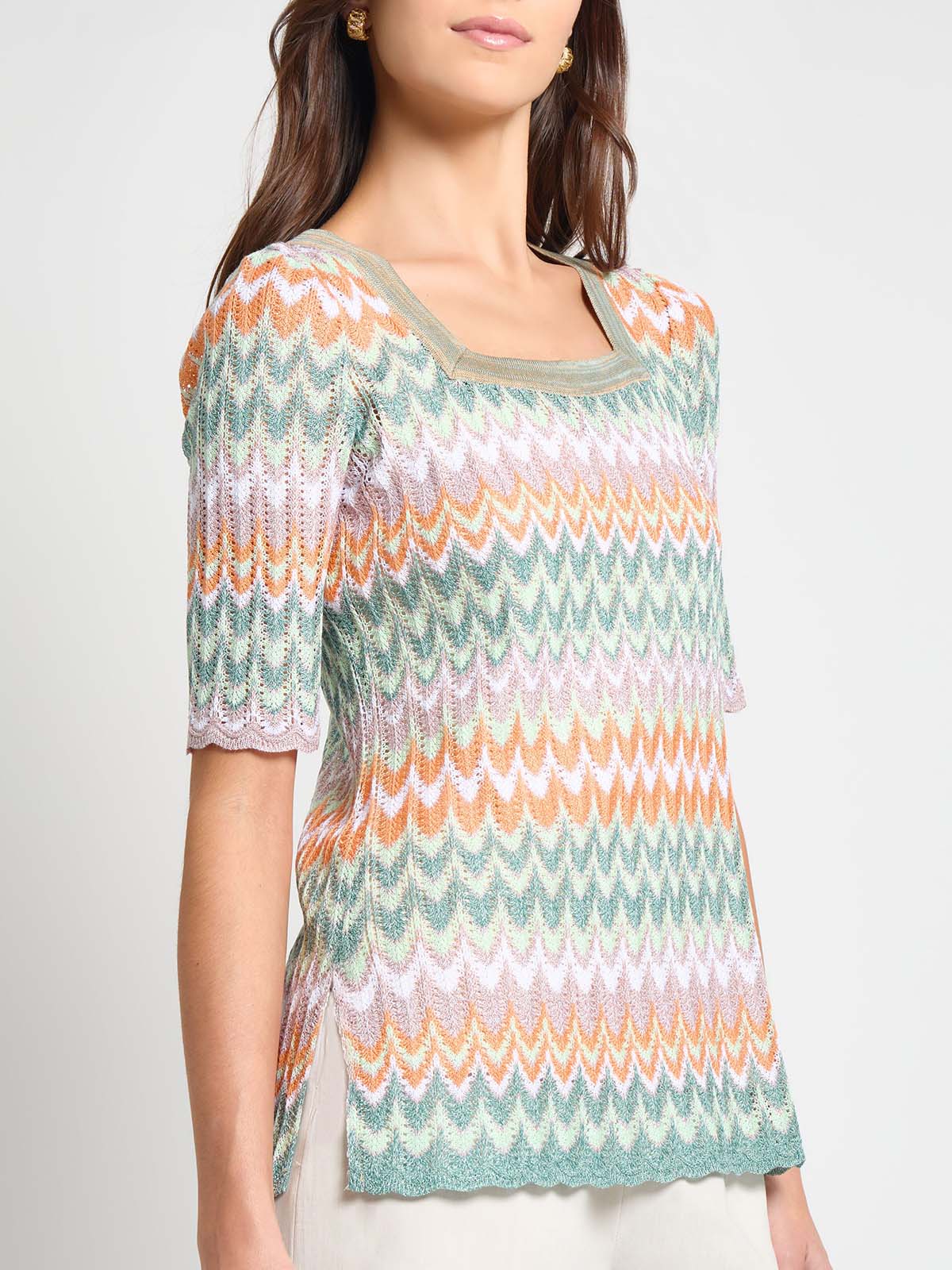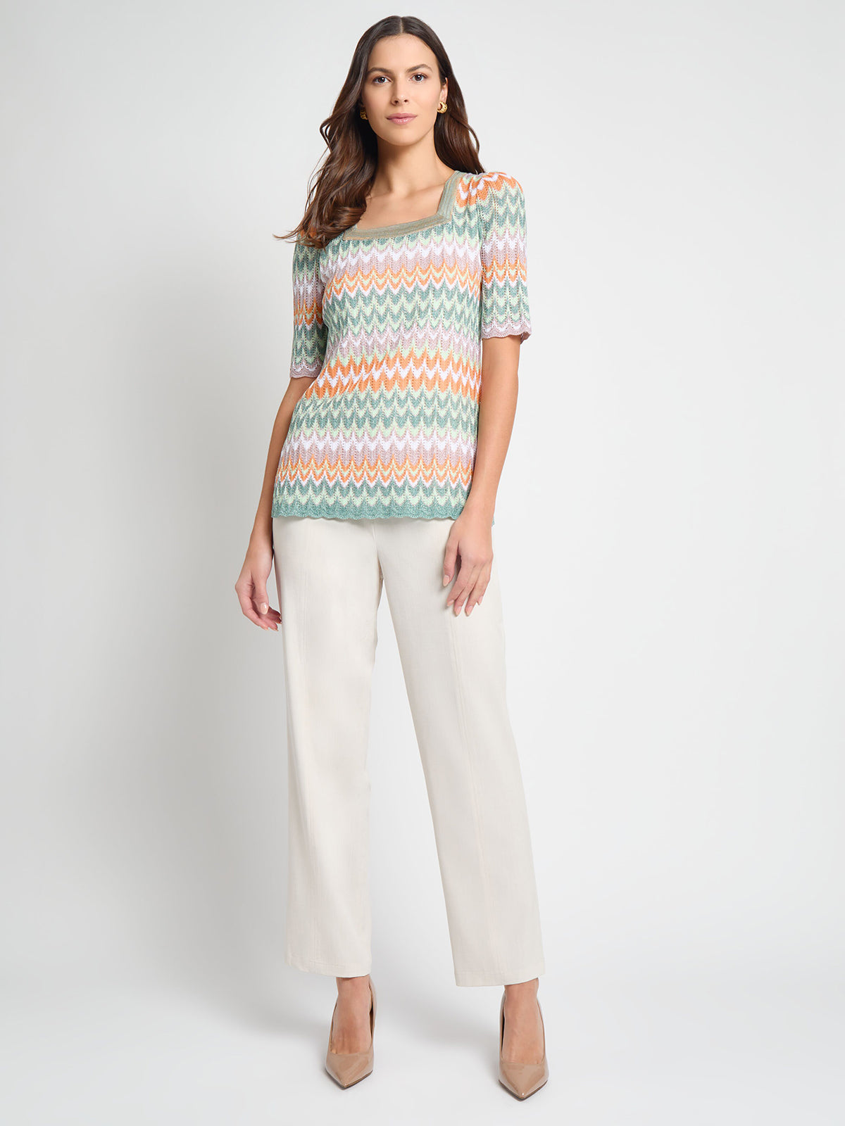 Misook Women’s Pointelle Zigzag Lined Knit Tunic – True Fit | Paradise Green & Amber Glow & Cape Verde & Charmeuse & Biscotti & White