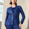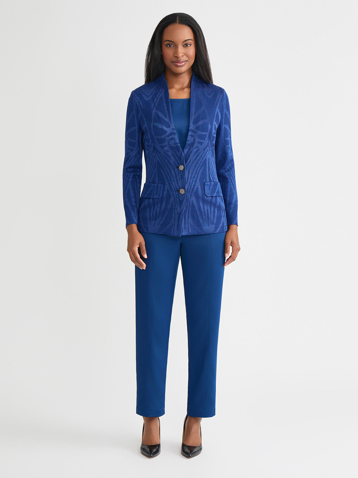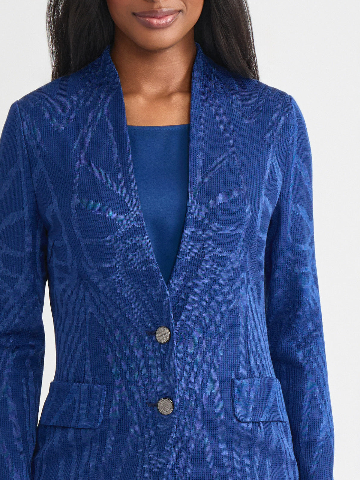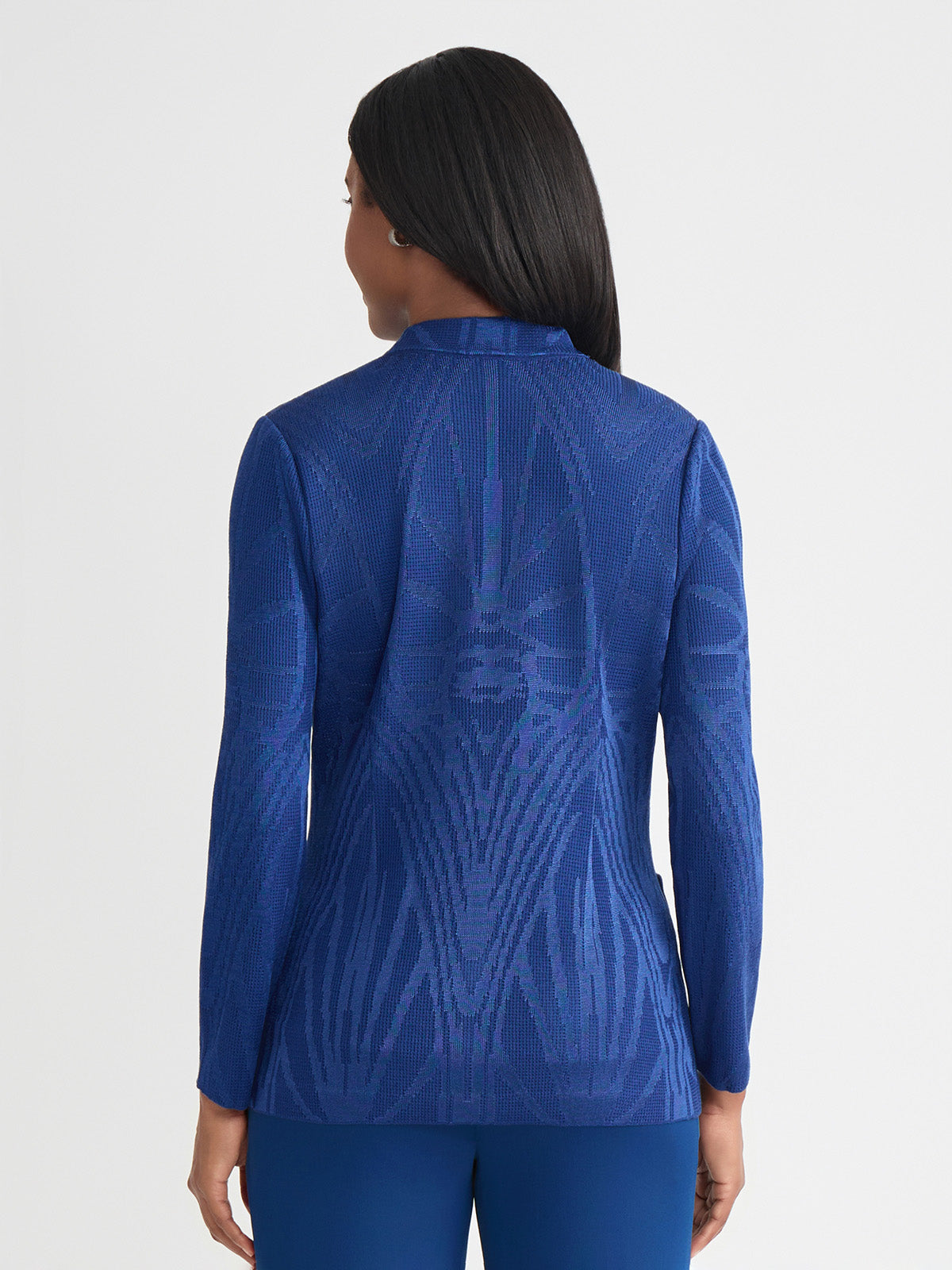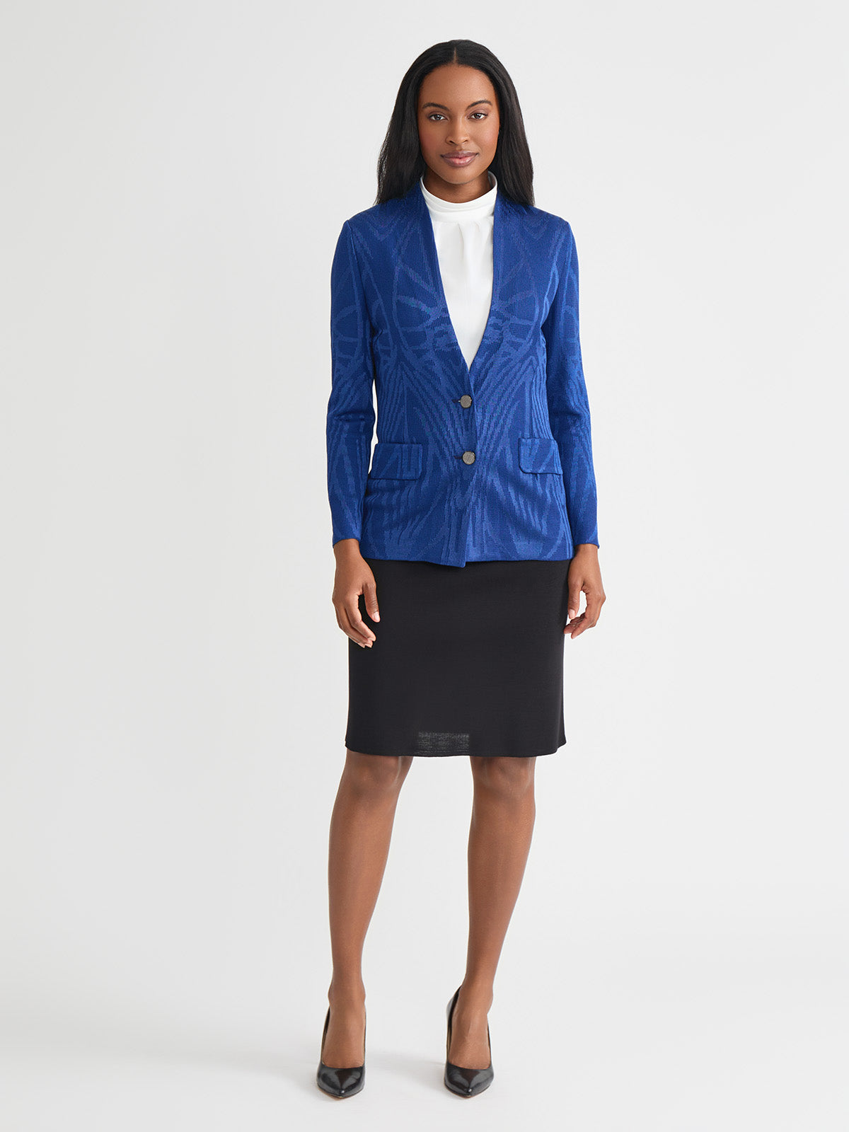 Misook Women’s Tailored Tonal Pattern Knit Jacket – True Fit | Lazuli Blue