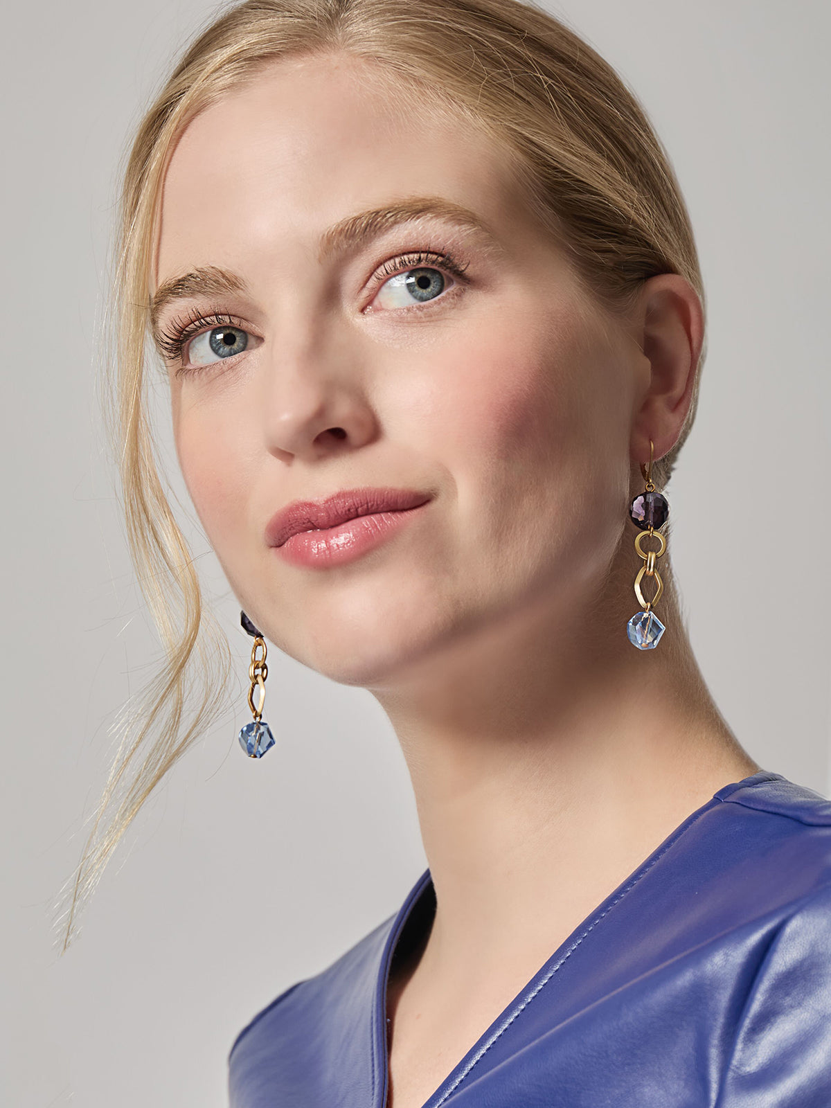 Tanzanite and Light Blue Crystal Earrings