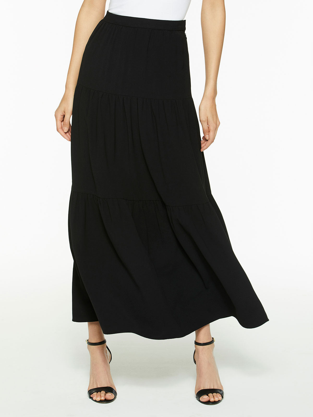 Be the first to review “Misook Women’s Tiered Light Flounce Maxi Skirt | Black” Cancel reply