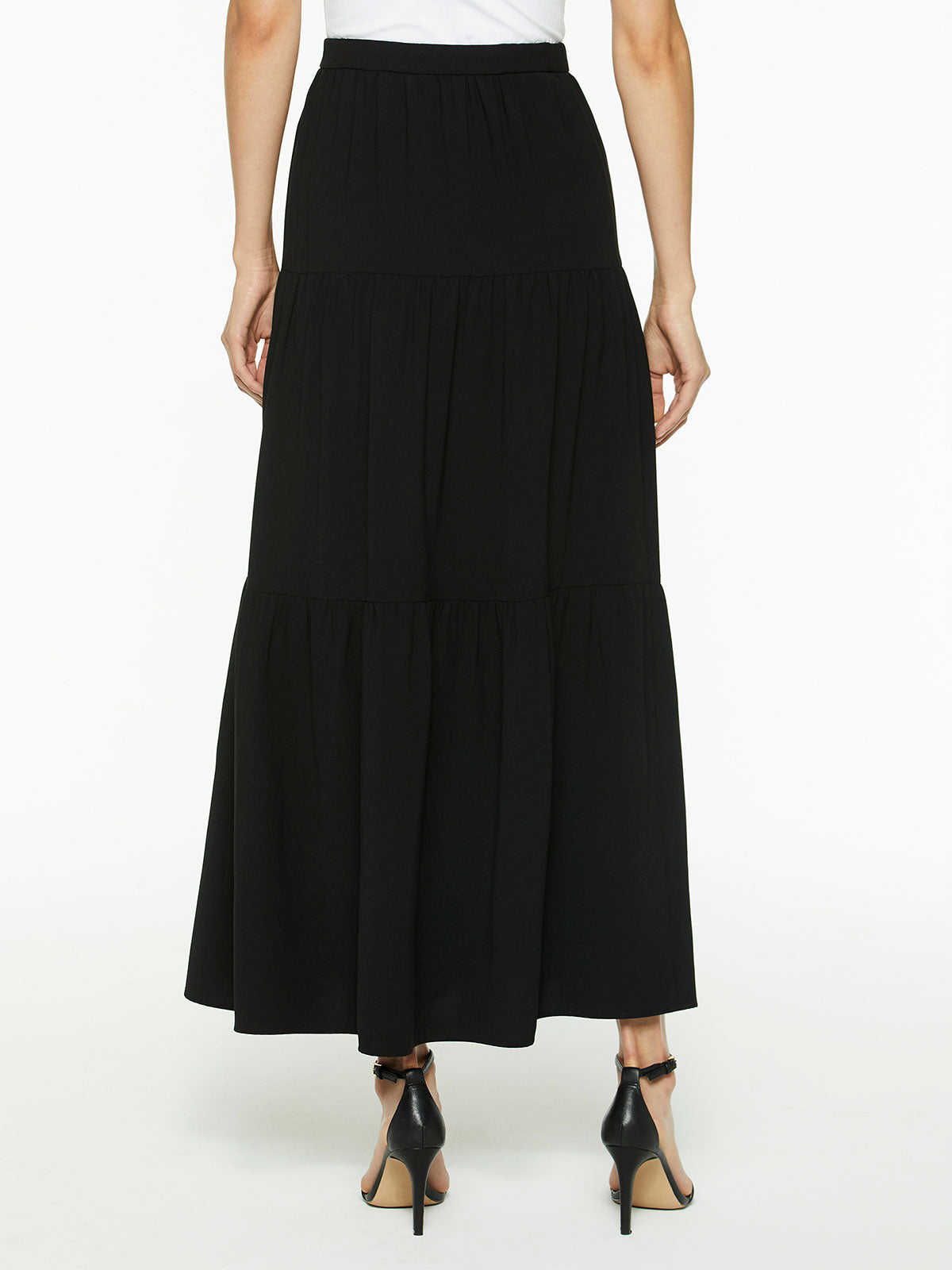 This breezy maxi skirt is made for easy summer days. The refreshing A-line silhouette features tiers of lightweight crepe complete with a no-roll elastic waistband and a side zipper. It’s a must-have piece that defines effortless polish.